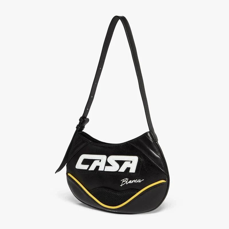 A bolsa Black Slim Biker é confeccionada em couro, apresentando a inscrição «Casa» da marca na frente. Completa-se com uma alça de ombro, fecho de correr, detalhes de debrum contrastante, ferragens banhadas a prata e uma silhueta elegante concebida para um uso diário descontraído. Fornecida com uma caixa de presente, um saco de proteção com a marca e um manual com detalhes do produto.