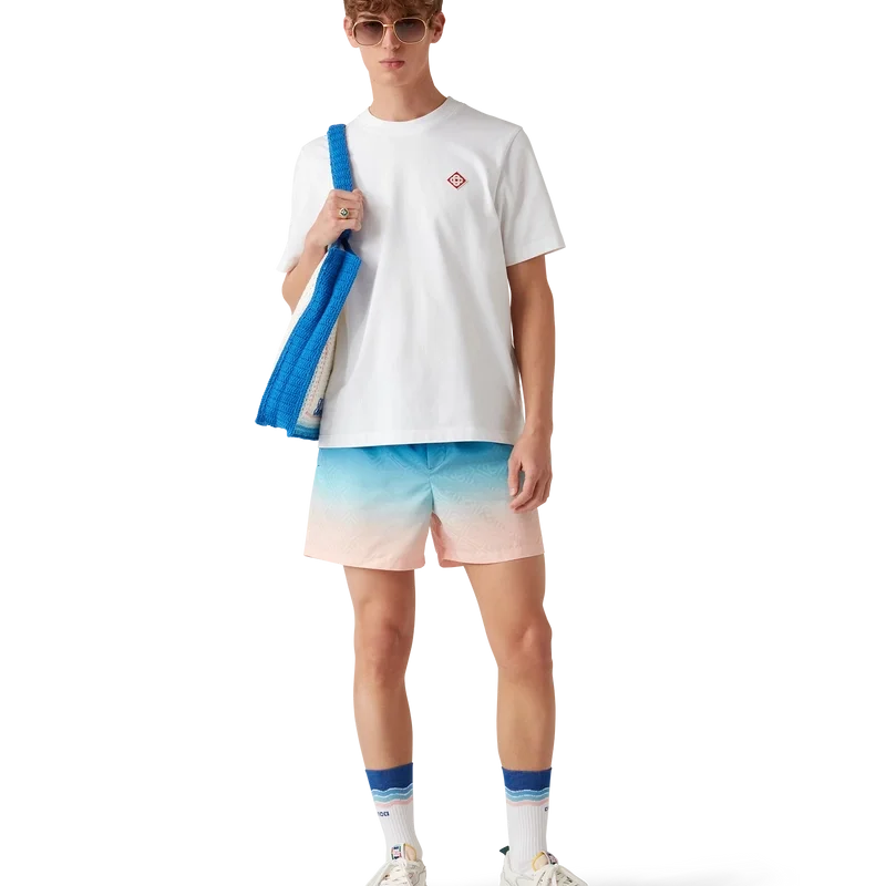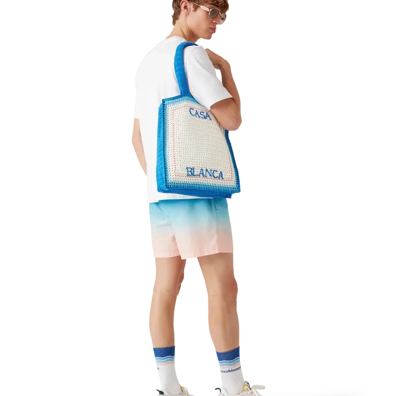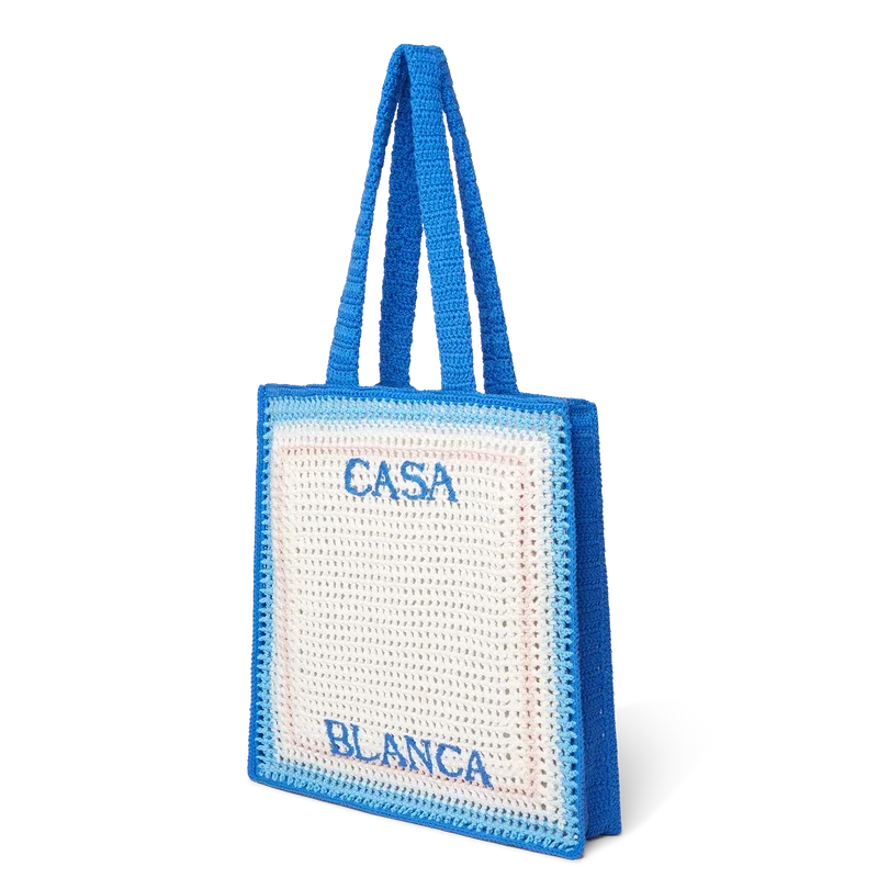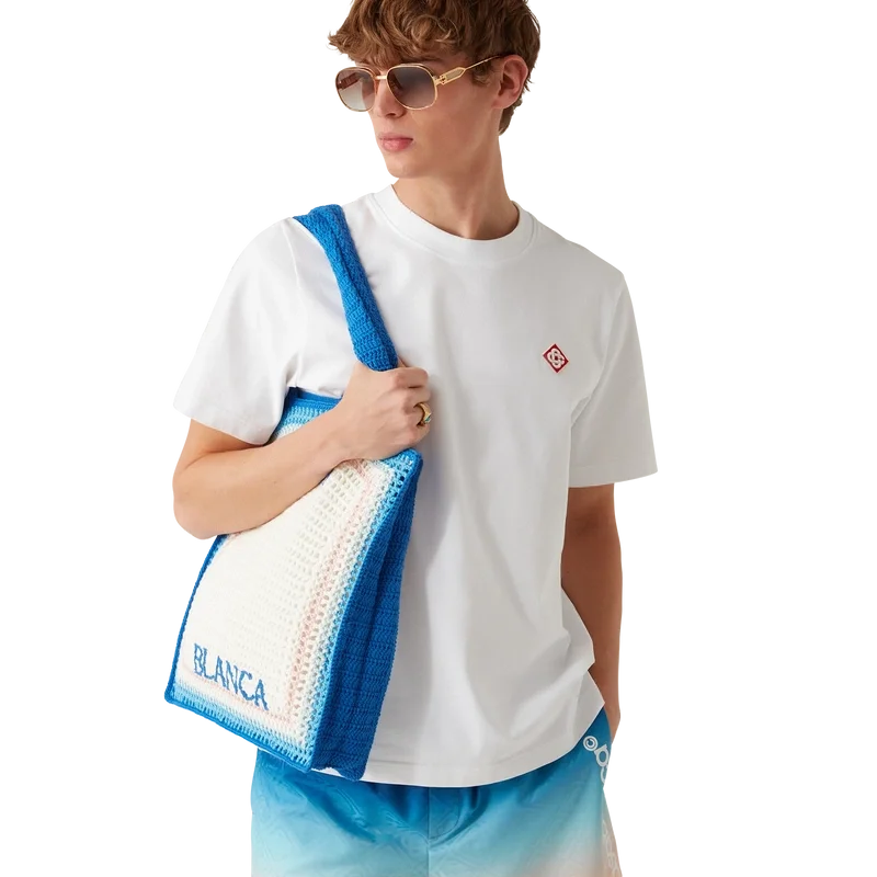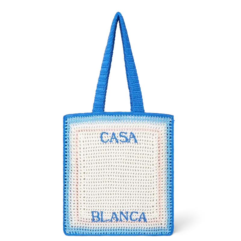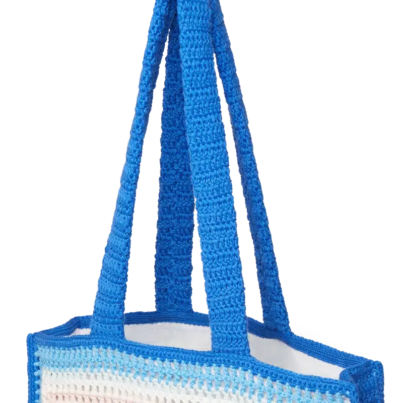 A bolsa Stripe Crochet é um modelo tricotado, confeccionado em tecido de algodão de croché, e apresenta uma silhueta despojada. Concluída com um logótipo preto bordado e alças que permitem que o modelo tipo sacola seja usado ao ombro ou na mão.
