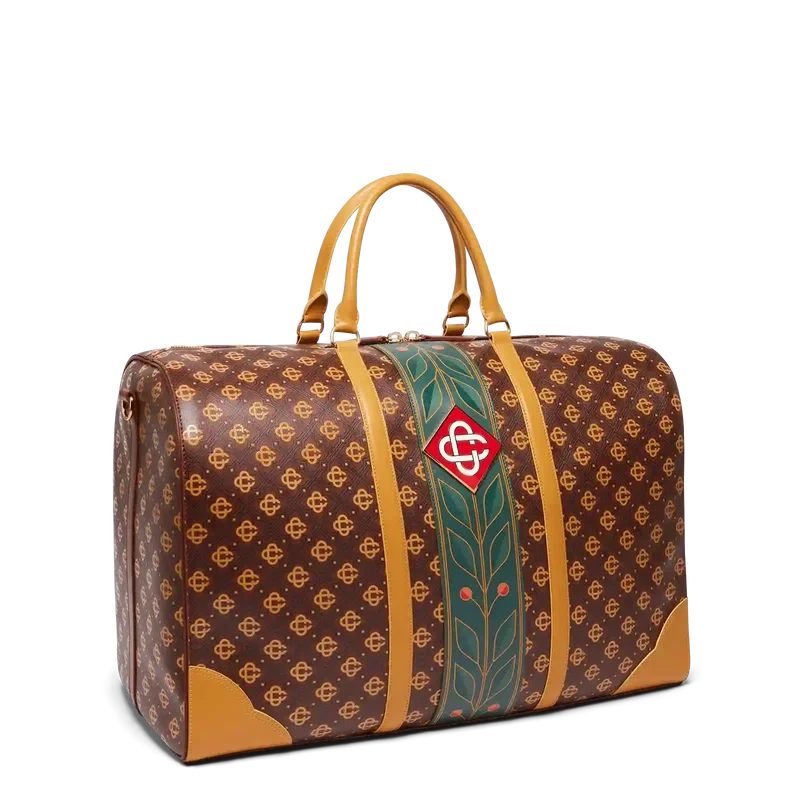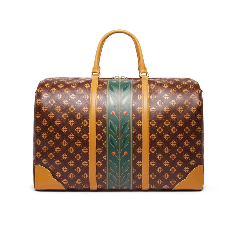 A mala de fim de semana Monogram castanha é confecionada em couro italiano, adornada com o logótipo de diamante emblemático da marca na lateral. Completa-se com o desenho de louro emblemático da marca, pegas, fecho de correr, alça de ombro e um bolso interior. Fornecida com uma caixa de presente, um saco de proteção com a marca e um manual de detalhes do produto.