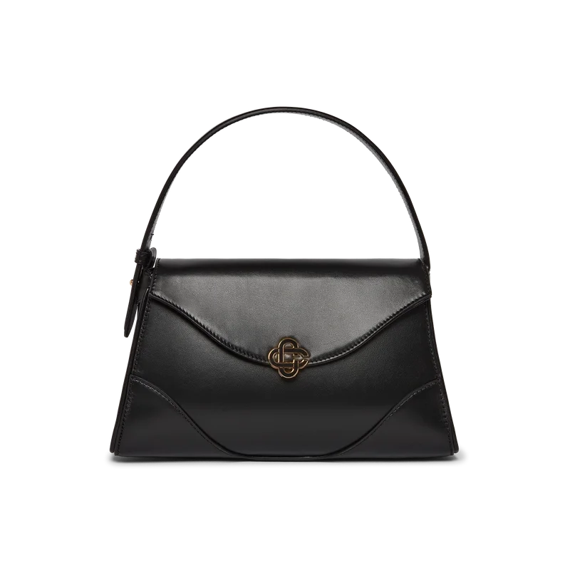 A bolsa Jeanne pequena preta é confecionada em pele de bezerro italiana, adornada com o Diamond Monogram de diamantes vermelhos da marca em ferragens metálicas de alta qualidade, que servem como fecho.