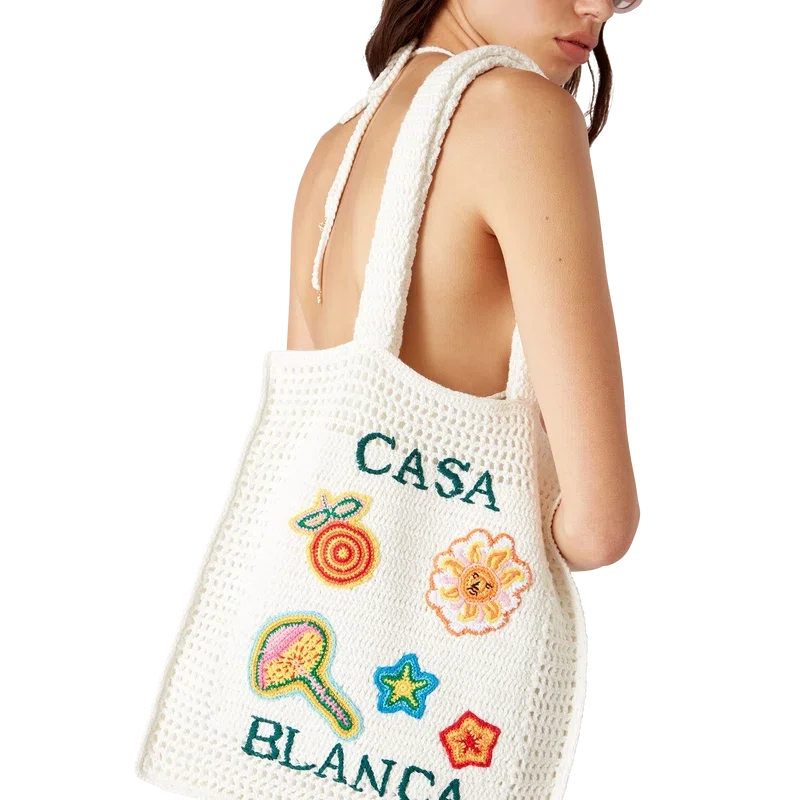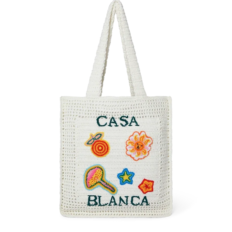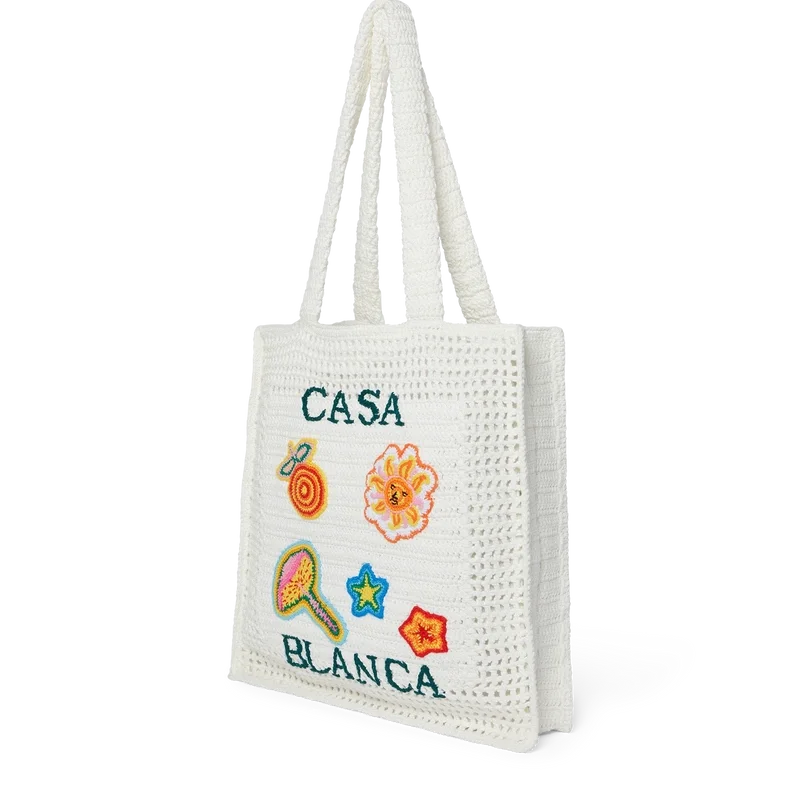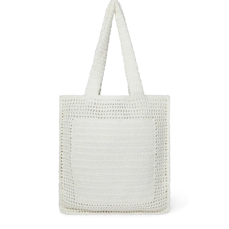 A bolsa Motif Crochet é um modelo tricotado, confeccionado em tecido de algodão de croché e apresenta uma silhueta folgada. Completa-se com um logótipo bordado sobreposto, elementos de design clássicos e alças que permitem que o modelo tipo tote seja usado ao ombro ou na mão.
