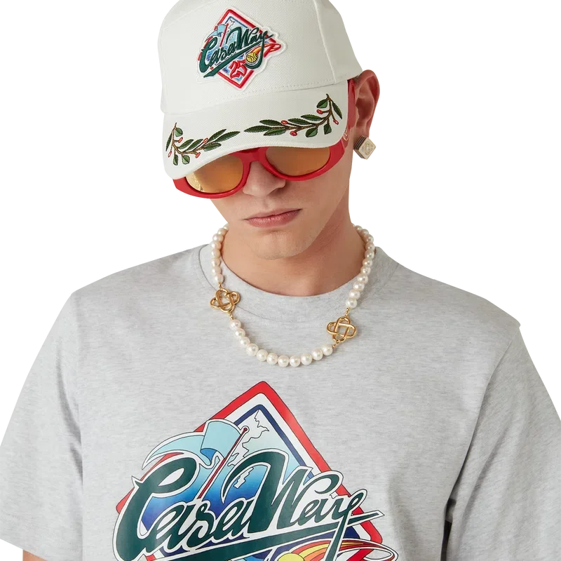 O Boné Casa Way World Series é um modelo clássico de beisebol confeccionado em tecido de algodão e apresenta uma arte exclusiva que reinterpreta o clássico emblema do beisebol americano para a Casa Way Tennis. Concluído com uma pala e uma fivela ajustável banhada a ouro.