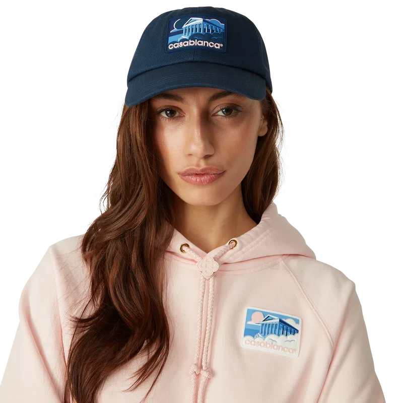O Boné Greek Temple é um modelo clássico de beisebol, confeccionado em tecido de algodão e com um emblema de silicone com ilustrações sazonais. Concluído com uma pala e uma fivela ajustável banhada a ouro.