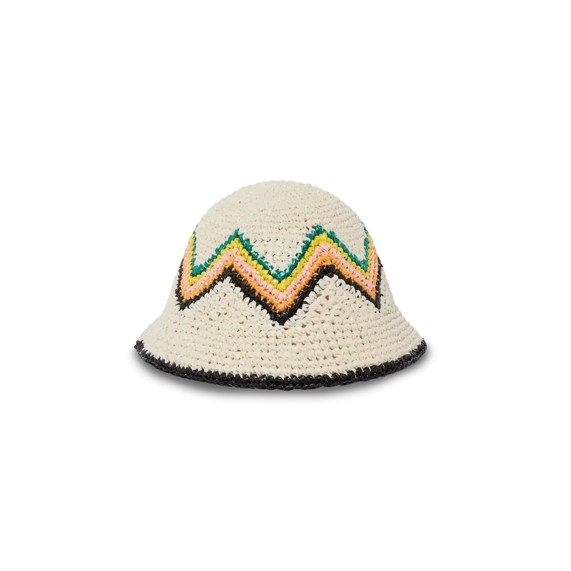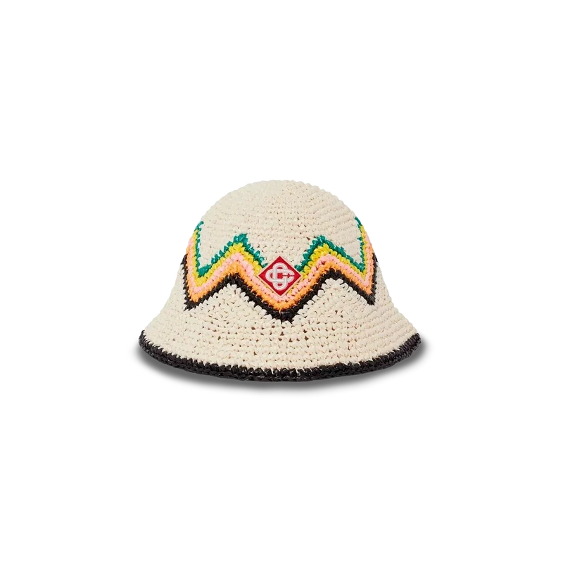 O chapéu de croché de ráfia é uma peça estilo balde confeccionada em tecido de croché de textura suave e trama aberta na nossa paleta de cores sazonal de verdes e branco – o acessório de verão por excelência. Rematado com um Diamond Monogram aplicado no centro.