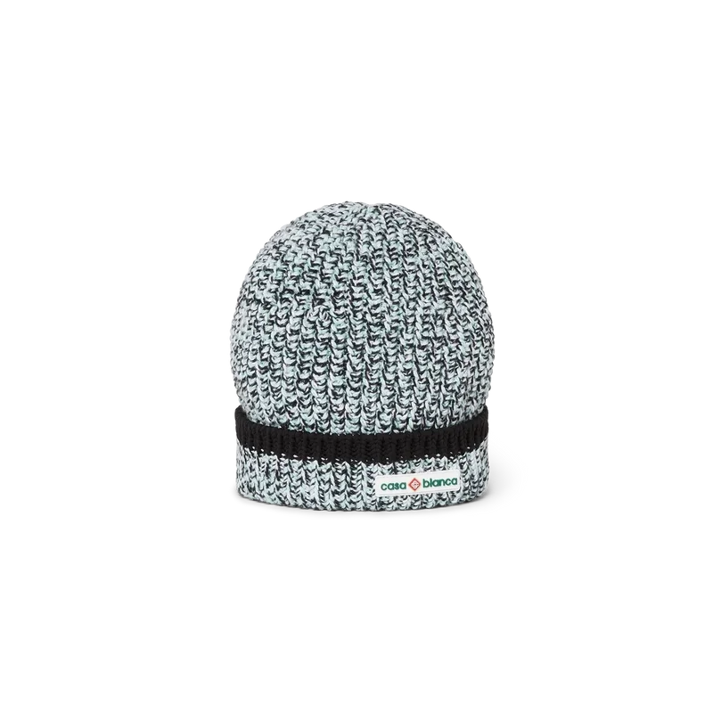 O gorro Mint Moulina é um modelo em malha confeccionado em tecido de algodão. Apresenta o logótipo Casablanca e detalhes na orla ao redor da aba.