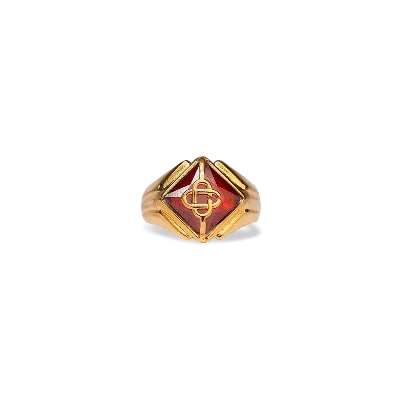 O Anel Casa Signet é fabricado em latão banhado a ouro e cristais. Apresenta o logótipo de diamantes Cc entrelaçados da marca e detalhes pintados na sua haste — esta peça vem com uma caixa de presente, saco de proteção e folheto com detalhes do produto.