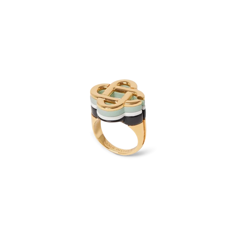 O anel Hiking Stacked apresenta o emblema Cc entrelaçado da Casablanca numa cabeça empilhada. Completado com hastes banhadas a ouro. Esta peça vem com uma caixa de presente, um saco de proteção com a marca e um folheto com detalhes do produto.