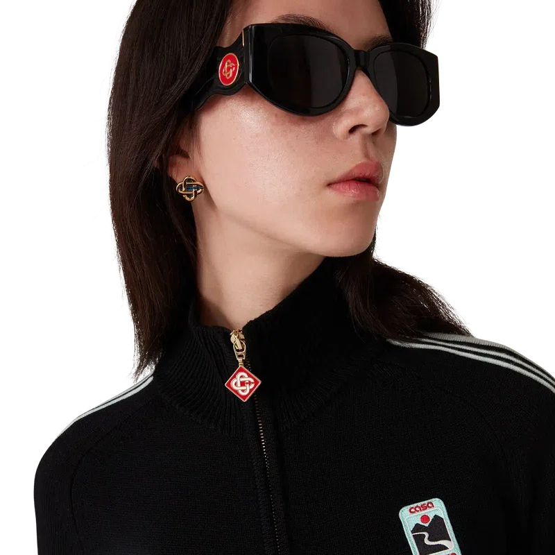 Os brincos Hiking Stacked são um par de brincos de pressão com o logótipo Cc entrelaçado da Casablanca num adorno multicolorido sobreposto. Completados com um pino banhado a ouro. Esta peça vem com uma caixa de presente, um saco de proteção com a marca e um folheto com detalhes do produto.