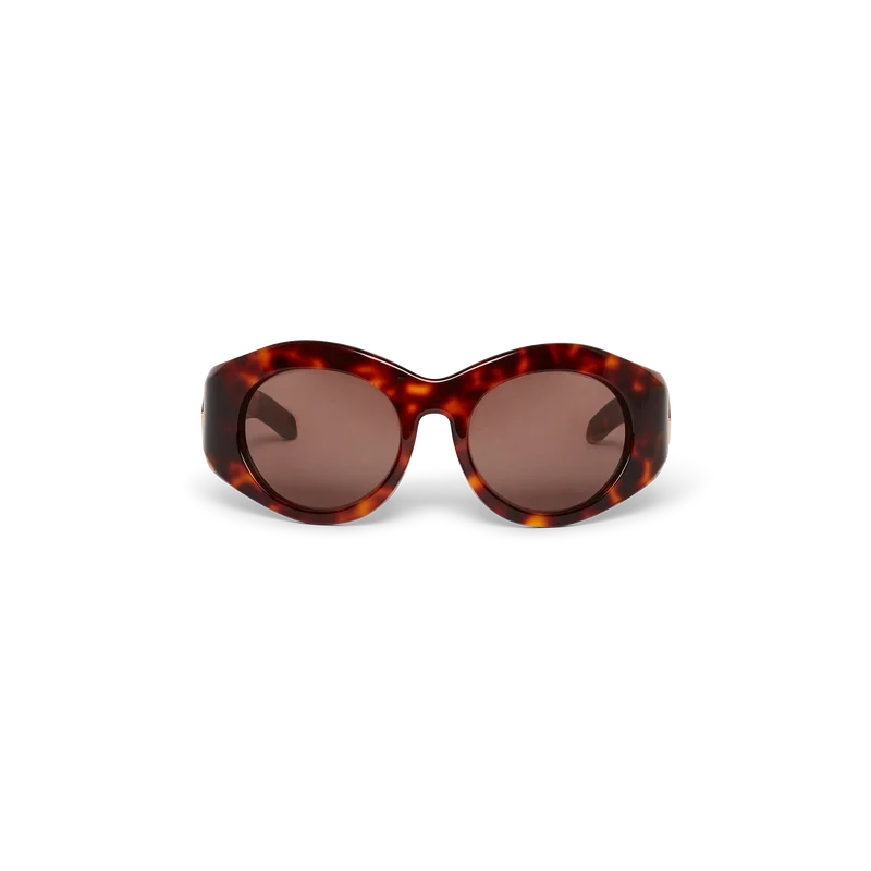 A estrutura arrojada em acetato dos óculos de sol Goggle em tartaruga define estes óculos, que apresentam o logótipo em diamante característico posicionado nas hastes. As lentes cinzentas oferecem proteção UV e o conjunto é completado com uma caixa de presente, um pano de limpeza, a garantia e um folheto com detalhes do produto.
