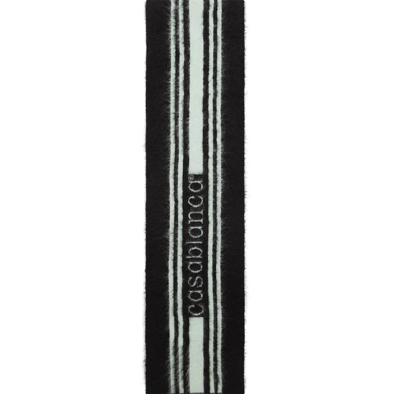 O lenço de mohair às riscas é um modelo tricotado, confeccionado em tecido de mohair. Apresenta o logótipo Casablanca e detalhes às riscas ao longo de todo o comprimento do lenço.