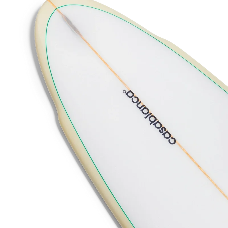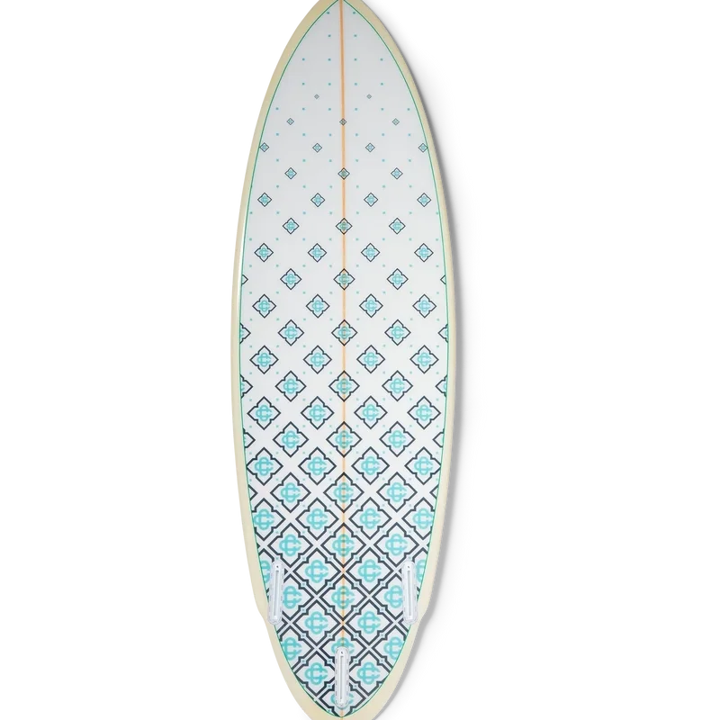 A prancha de surf Casablanca é fabricada em fibra de vidro premium, espuma de poliuretano e resina de poliéster e apresenta o padrão monograma degradê da marca na parte inferior e a marca Casablanca com o logótipo de diamante característico no deck. Completa-se com uma longarina de madeira, um deck branco com uma borda verde menta e rails amarelo claro. A prancha de surf Casablanca mede 178,2 cm (do nose ao tail) x 53 cm (de rail a rail no ponto mais largo). Este artigo não é fornecido com quilhas nem corda de segurança.