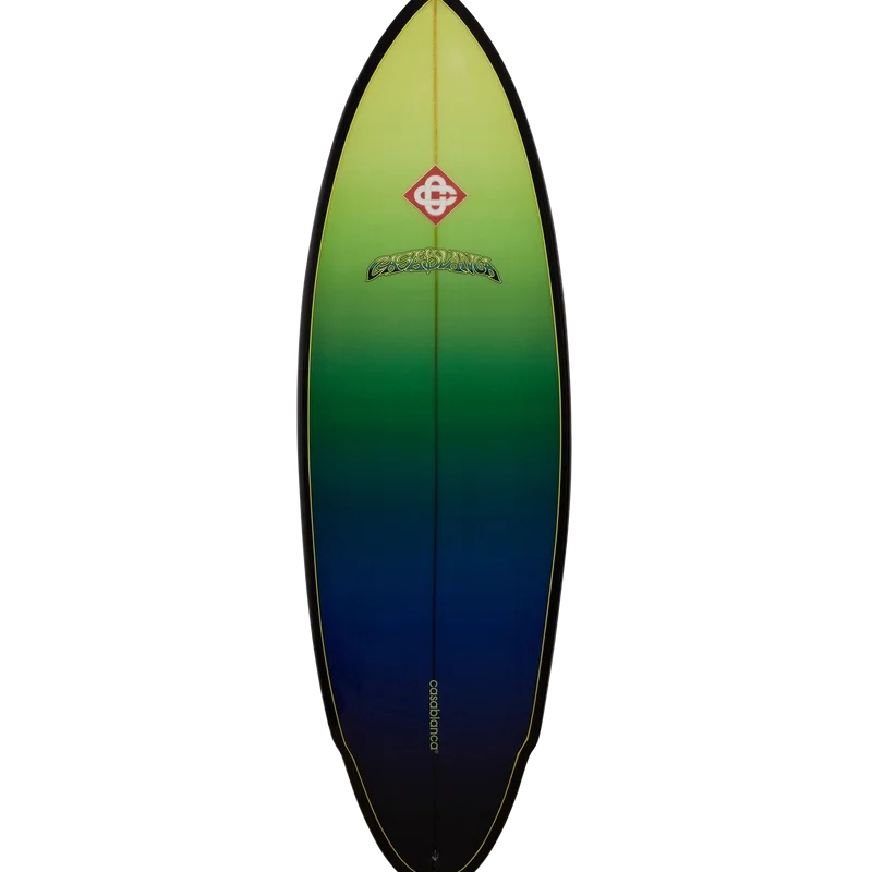 A prancha de surf retro Casablanca feita à mão apresenta um design requintado com o gradiente da estação, fabricada em espuma de poliuretano com resina de poliéster e fibra de vidro. Apresenta detalhes multicoloridos em gradiente e a marca, que captam a abordagem sofisticada da marca aos códigos do desporto e do lazer.