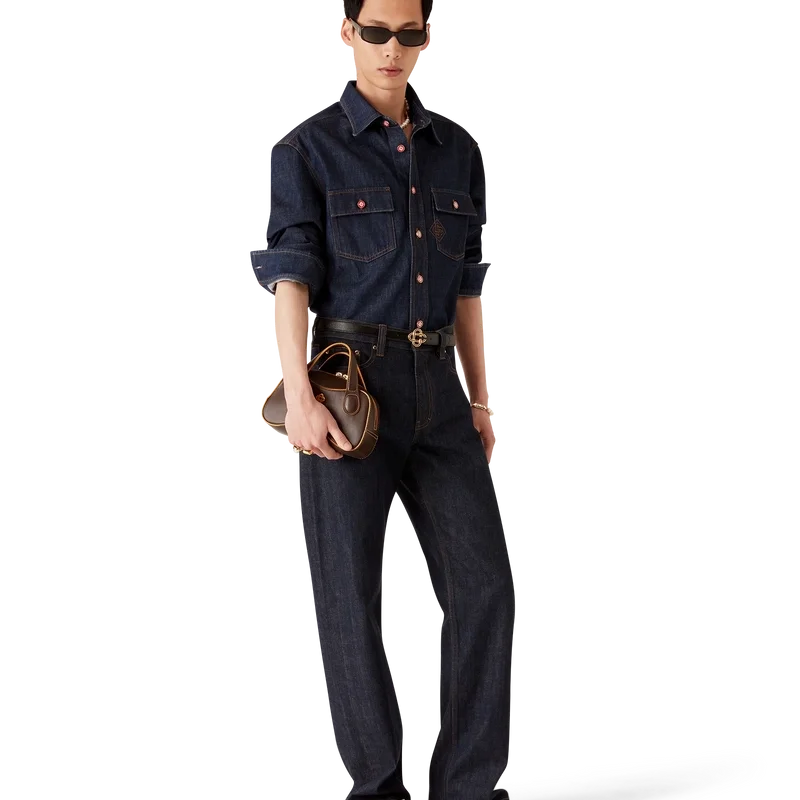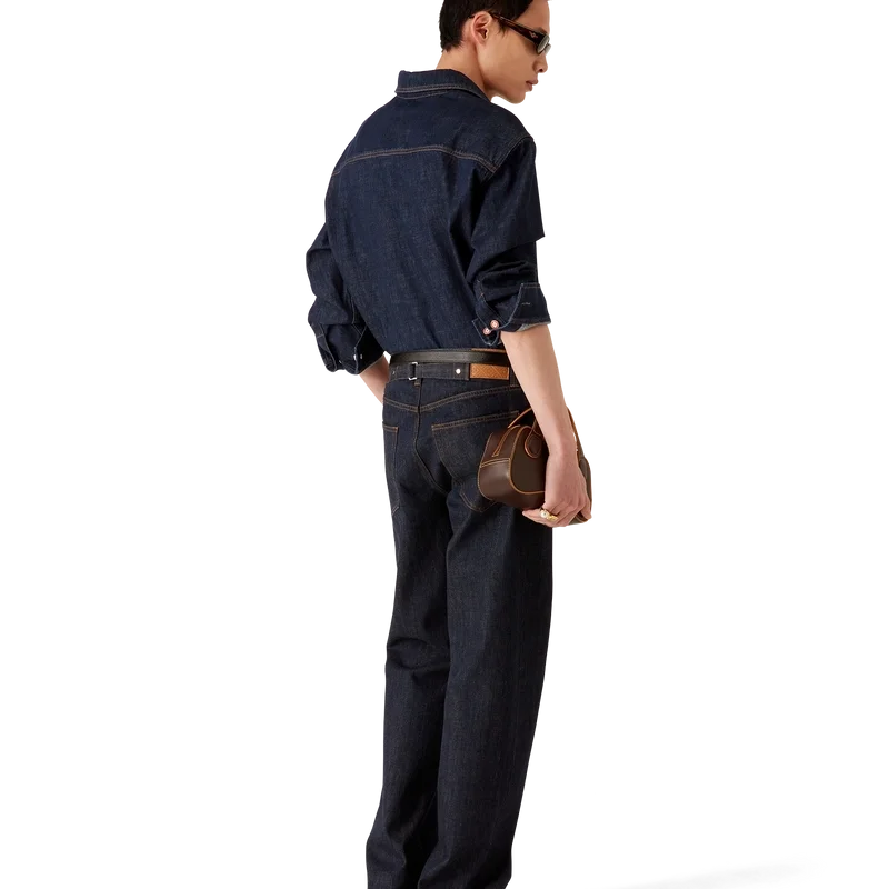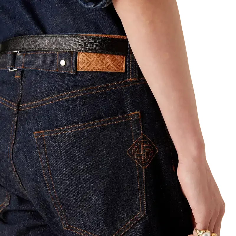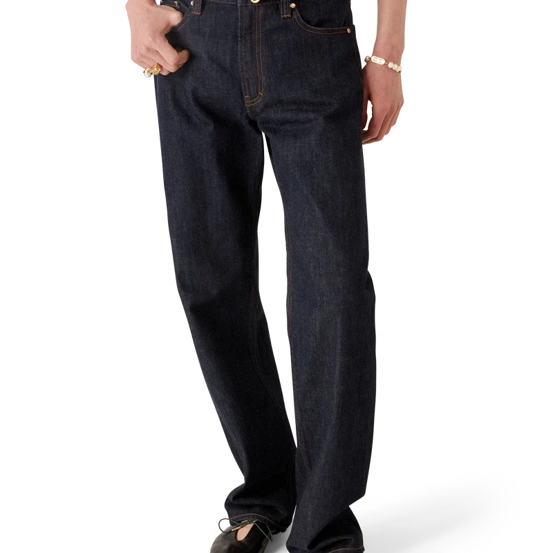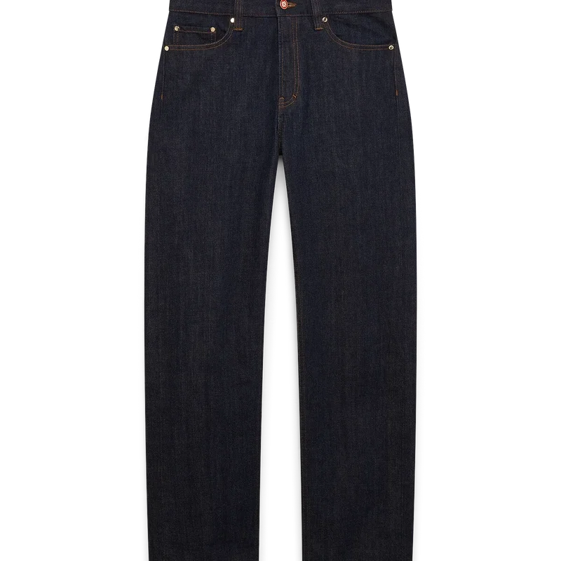 As calças de ganga Laurel Selvedge têm um corte reto e são confeccionadas em tecido de ganga de algodão. Apresentam presilhas para cinto, bolsos frontais e traseiros, fecho de correr e ferragens banhadas a ouro com a marca.