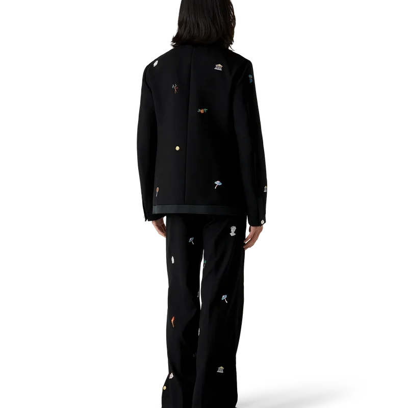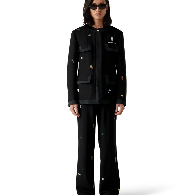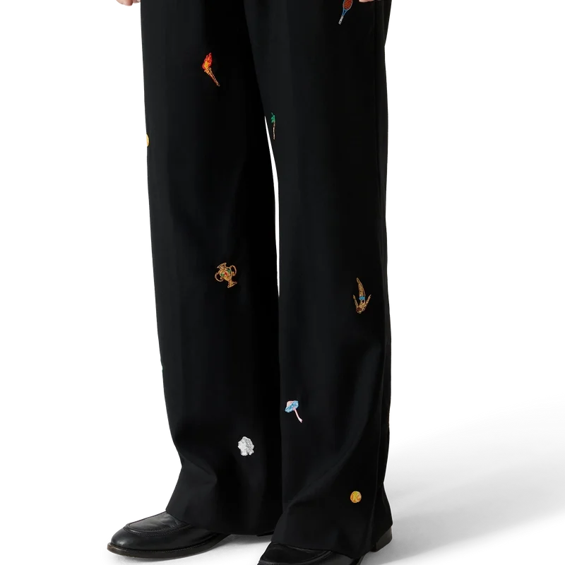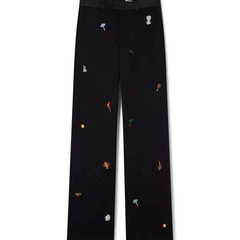 As Calças de Lã à Medida com Motivo Bordado apresentam uma silhueta clássica, confeccionadas em tecido de lã bordado. Acabamento com bordados que representam a simbologia da marca com a natureza e a arquitetura, bolsos laterais inclinados, forro, fecho de correr, presilhas para cinto e bolsos traseiros. Concebidas para serem usadas com o casaco a condizer.
