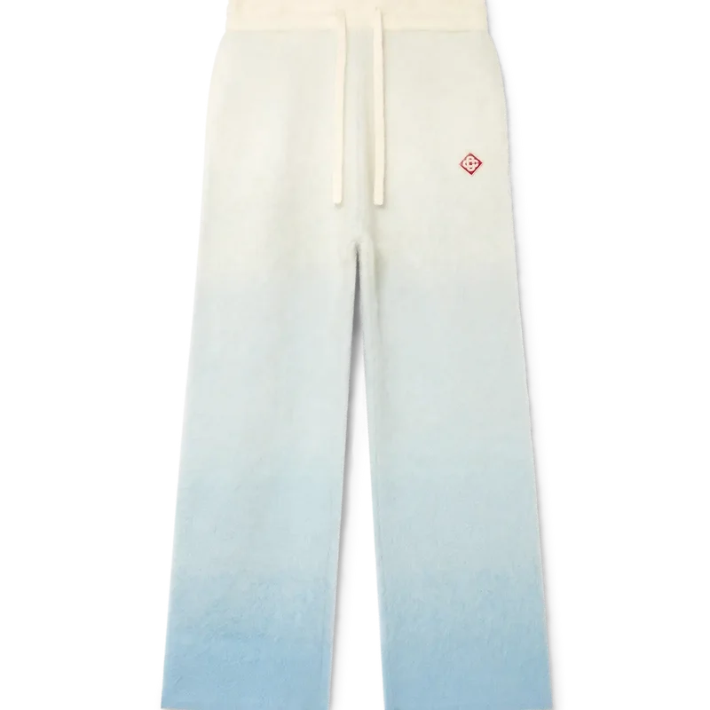 As calças Ski Monogram são um design desportivo-casual requintado, confeccionadas em tecido misto de mohair, apresentando um gradiente azul e branco inspirado na névoa matinal que se eleva sobre a paisagem alpina do Japão. Inspiradas no amanhecer que se espalha pelos terraços de arroz cobertos de neve e nas suaves transições de cor onde os lagos gelados encontram as cordilheiras distantes.