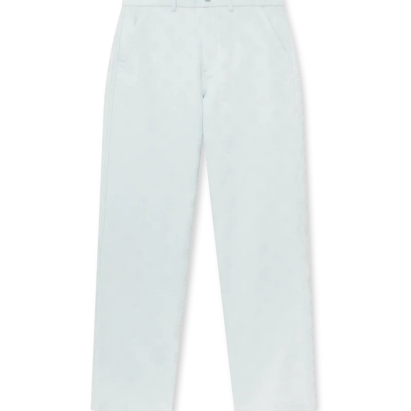 As calças de trabalho em algodão com monograma apresentam um corte reto com o logótipo Honeydew da marca repetido. Este padrão difere dos nossos outros monogramas, uma vez que combina formas únicas para formar um padrão coeso. Completadas com presilhas para cinto, fecho de correr, bolsos inclinados e bolsos traseiros.