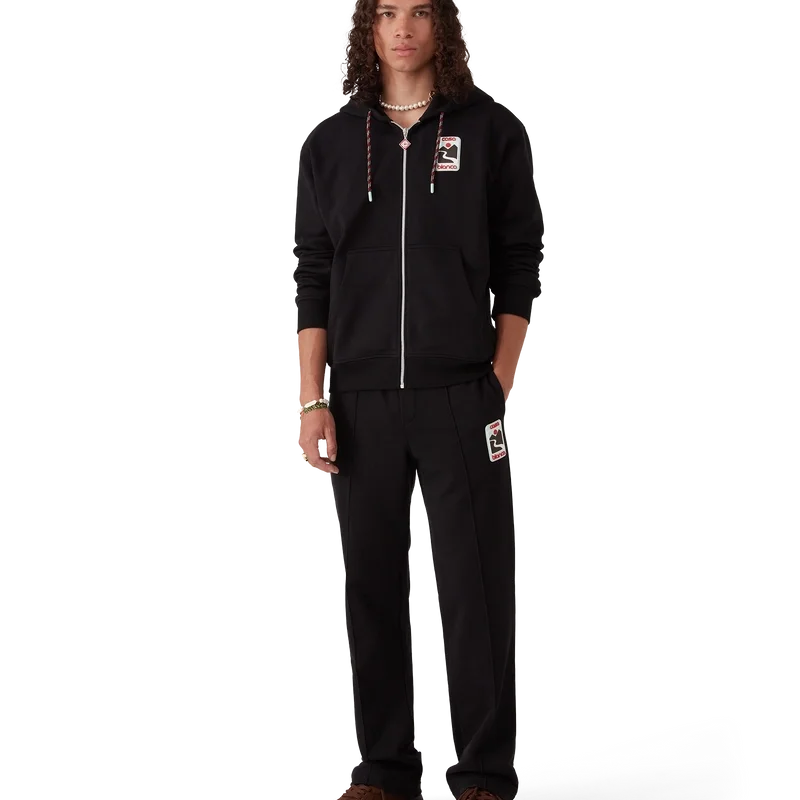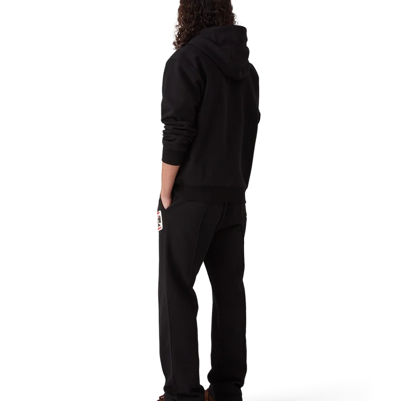As calças de treino Sunset Valley apresentam um corte reto e são confeccionadas em tecido de algodão orgânico. Completam-se com uma cintura elástica, cordão de aperto com pontas douradas, costuras pin-tuck na frente, bolsos nas costuras laterais e um bolso de remendo nas costas.