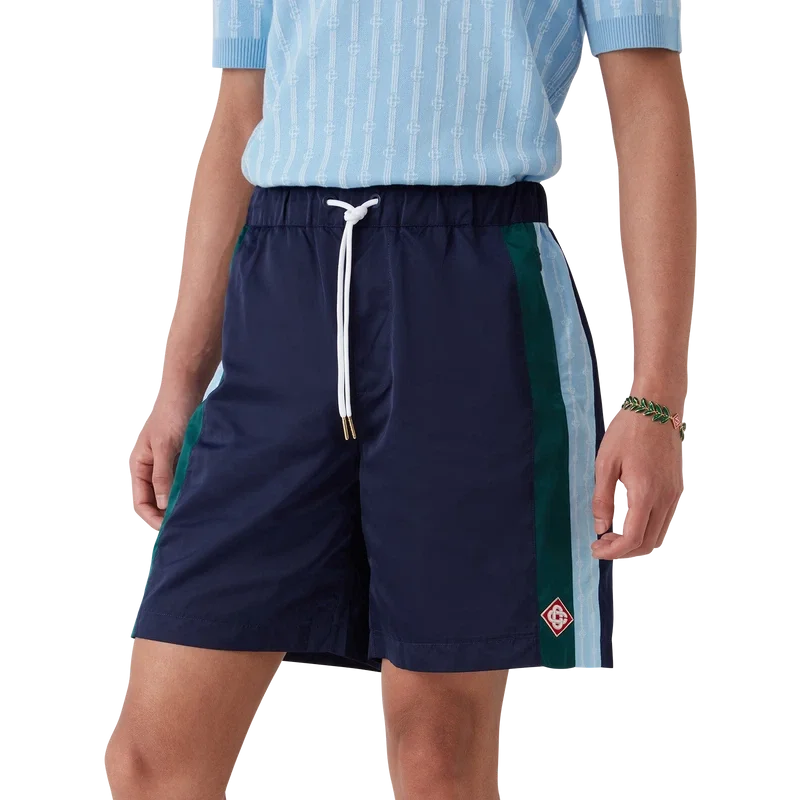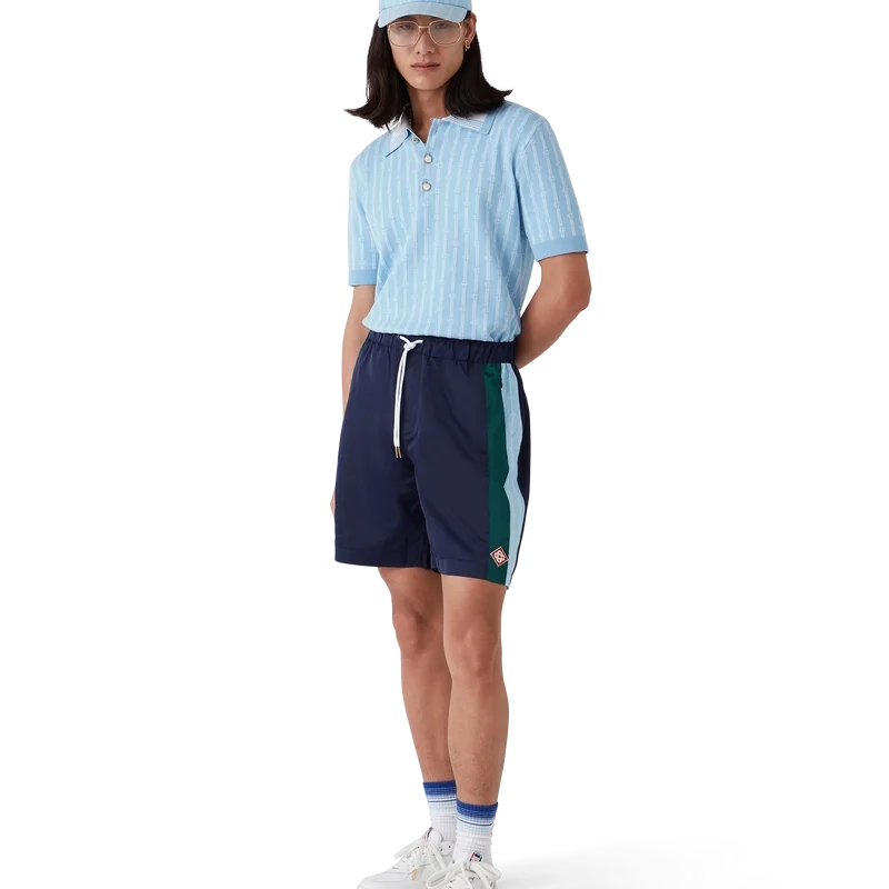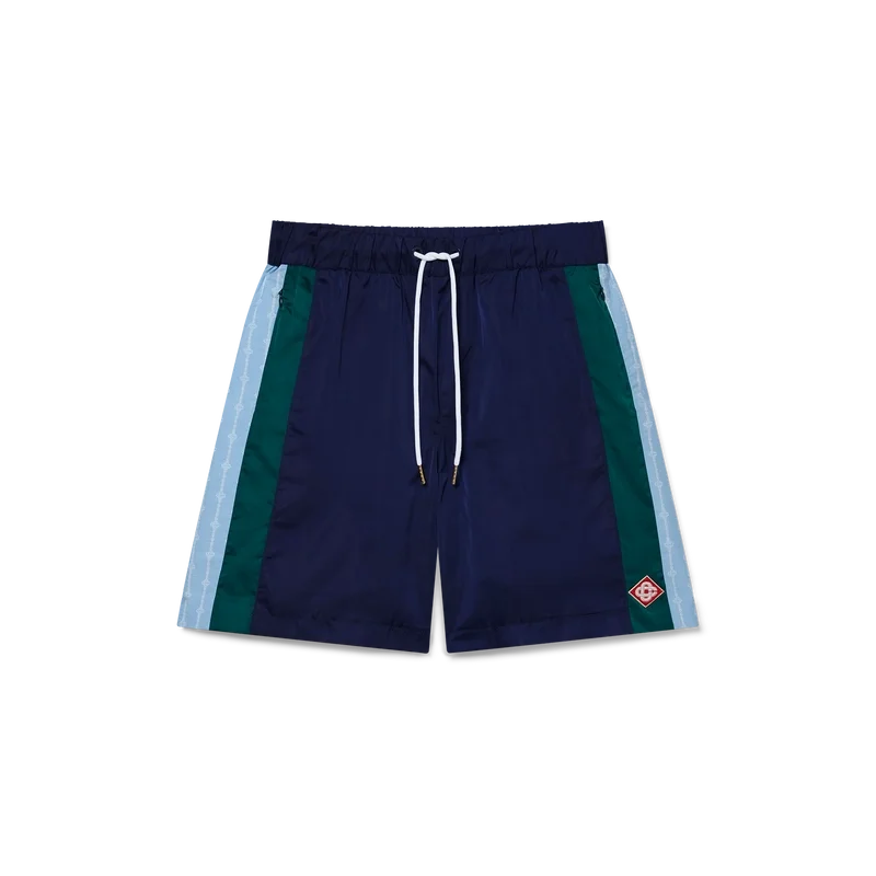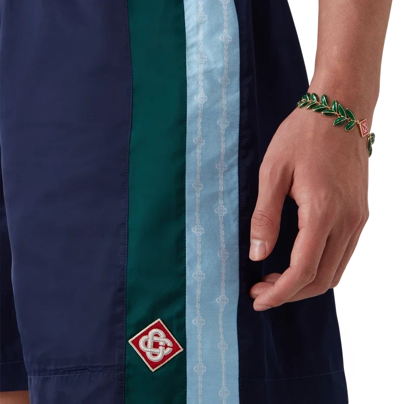 Os calções de treino Laurel Stripe apresentam um design de comprimento médio, confecionados em tecido técnico com o logótipo de diamante emblemático da marca. Completam-se com uma cintura elástica, cordão de aperto com pontas douradas, bolsos laterais nas costuras com fecho de correr, detalhes de riscas nas laterais e um bolso traseiro com debrum e fecho de correr.