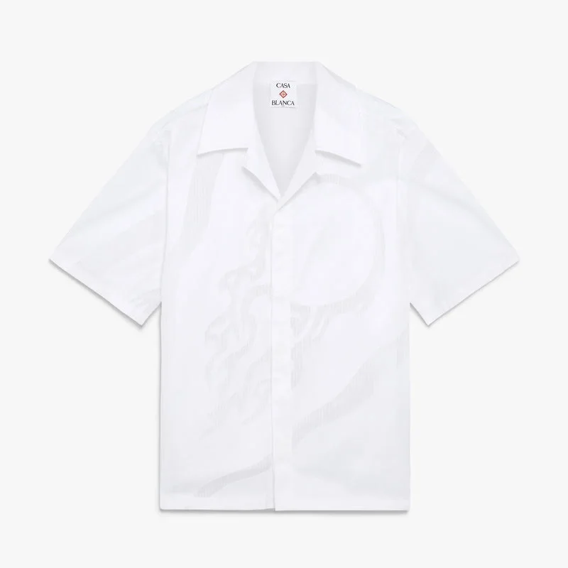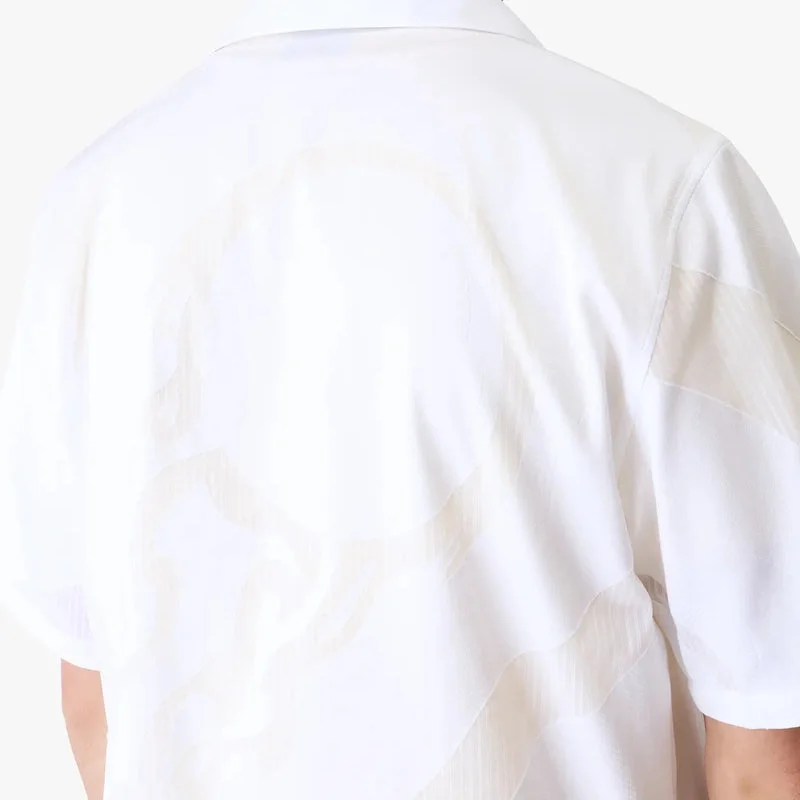 A camisa de manga curta Fil Coupe da The Art of the Serve é um design requintado confeccionado em tecido de camisa, apresentando uma interpretação gráfica do logótipo da marca, uma bola de ténis em voo, que representa o equilíbrio fundamental entre potência, velocidade e controlo. Completa-se com gola, fecho de botões, botões de corozo com o logótipo CC entrelaçado e um bolso no peito.