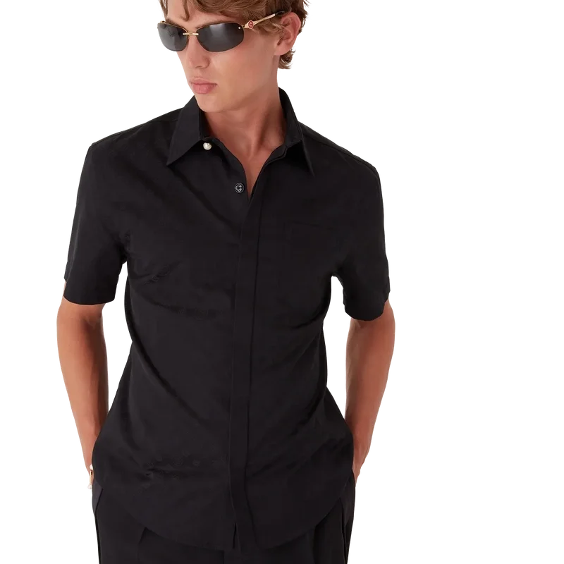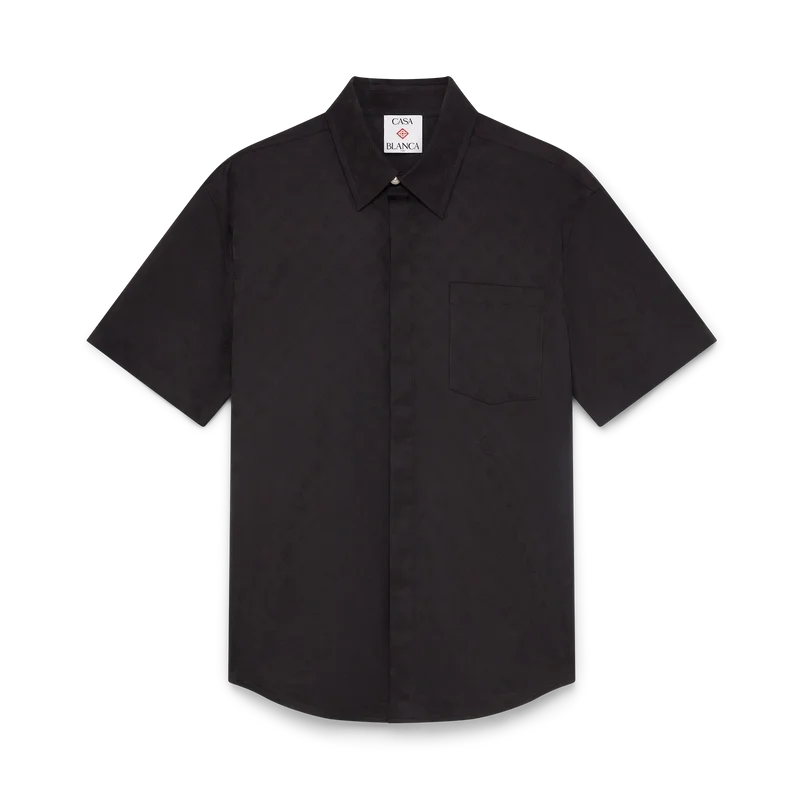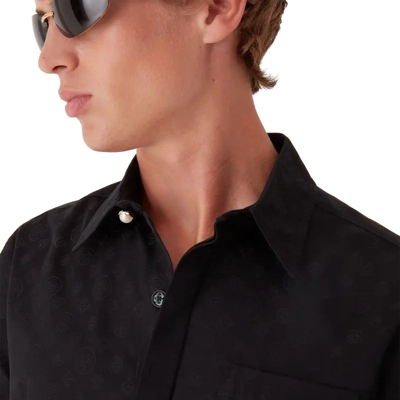 A camisa de calções em algodão com monograma apresenta um design clássico com o padrão repetido do logótipo Honeydew da marca. Este padrão difere dos nossos outros monogramas, uma vez que combina formas únicas para formar um padrão coeso. Apresenta gola em ponta, fecho com botões, botões em corozo com o logótipo CC entrelaçado característico, um bolso no peito e um botão de pérola com aro dourado característico na gola.