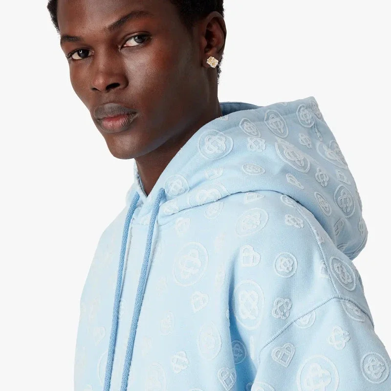 A camisola com capuz e monograma aplicado apresenta um design requintado, com o monograma aplicado da marca. Completa-se com capuz, fecho com cordão, bolso canguru e detalhes de canelado nos punhos e na bainha.