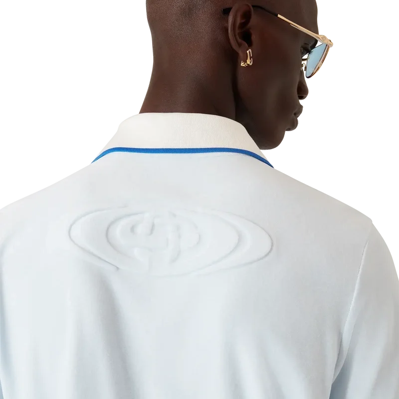 A camisa polo de manga curta em veludo apresenta um design clássico com o logótipo Warped da marca. Completa-se com fecho de botões, botões em corozo com o logótipo CC entrelaçado e gola canelada em contraste.