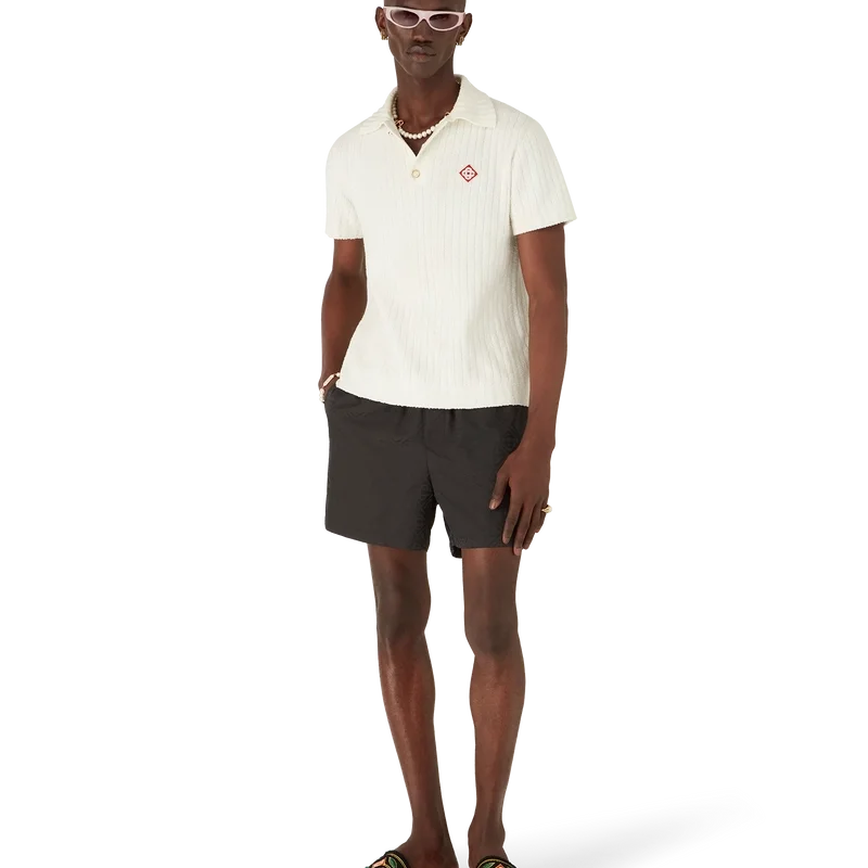 As sandálias Laurel Terry para homem são confecionadas em tecido felpudo e apresentam o logótipo em forma de diamante da marca e o desenho característico da coroa de louros na parte superior. Completam-se com uma palmilha moldada para um conforto superior e uma sola em borracha texturada que combina desempenho com lazer.