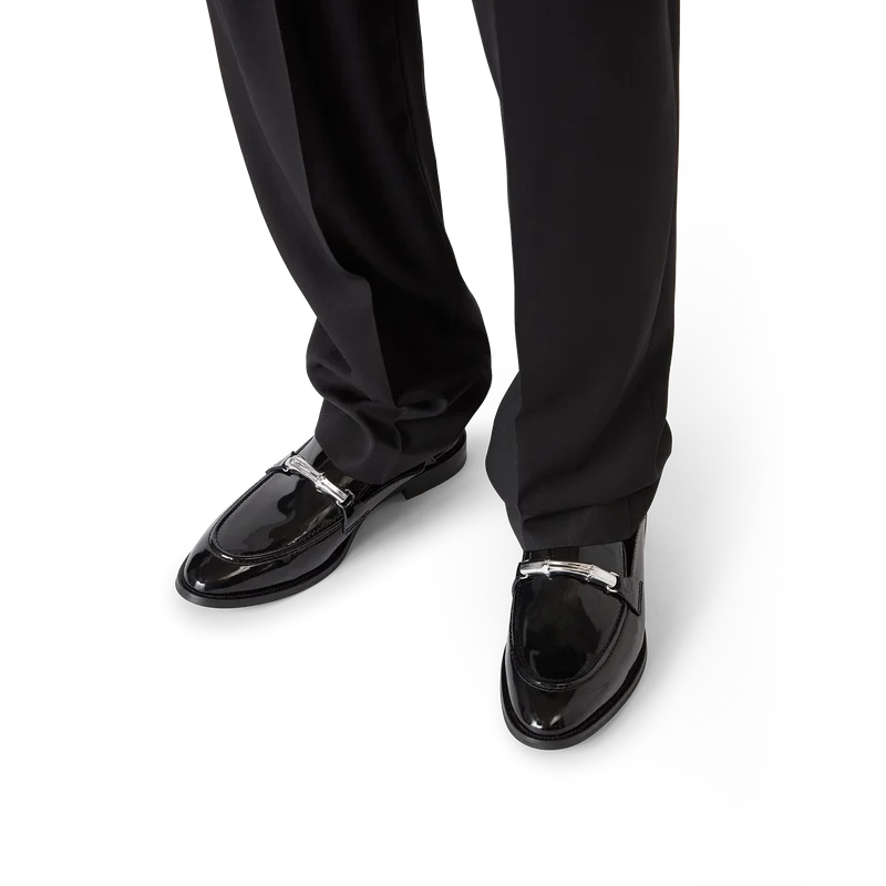 O mocassim Bamboo preto é um modelo raso confecionado com parte superior em pele de bezerro italiana. Apresenta a nossa icónica tira de bambu, forro em pele, sola em pele, ferragens banhadas a ouro e um salto em bloco de 10 mm.