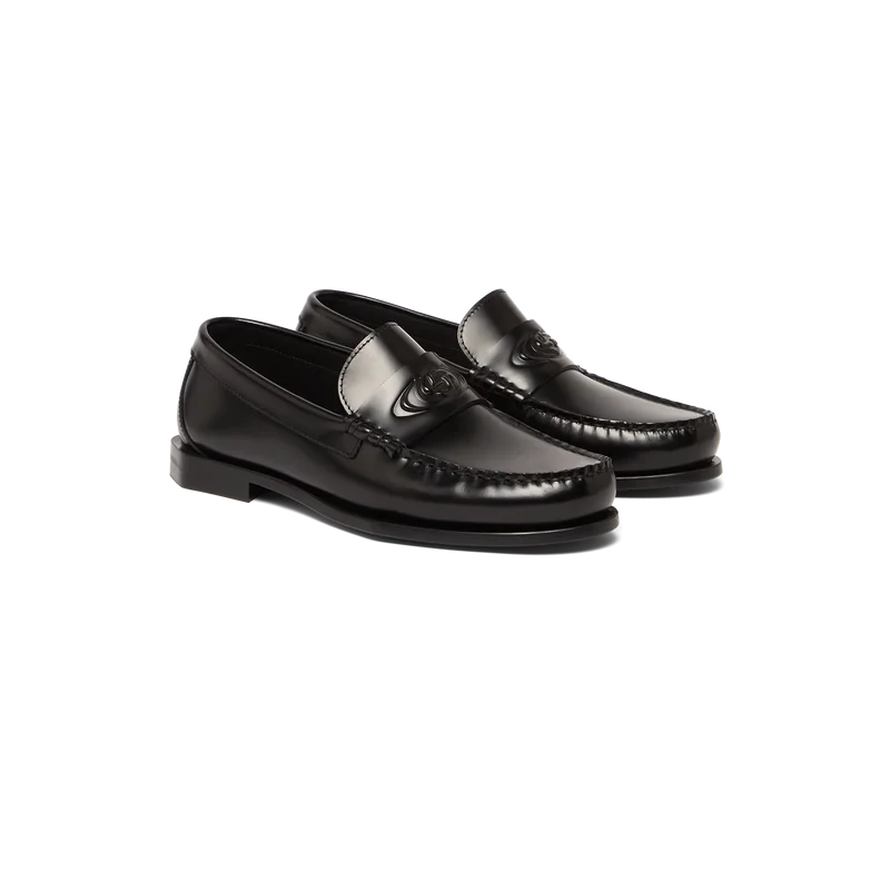Os mocassins de couro preto para homem são um modelo clássico sem atacadores, de calçar, confecionados com parte superior em pele de bezerro italiana. Completam-se com uma distinta tira de couro na gáspea, forro em couro, sola em couro e um salto em bloco de 15 mm.
