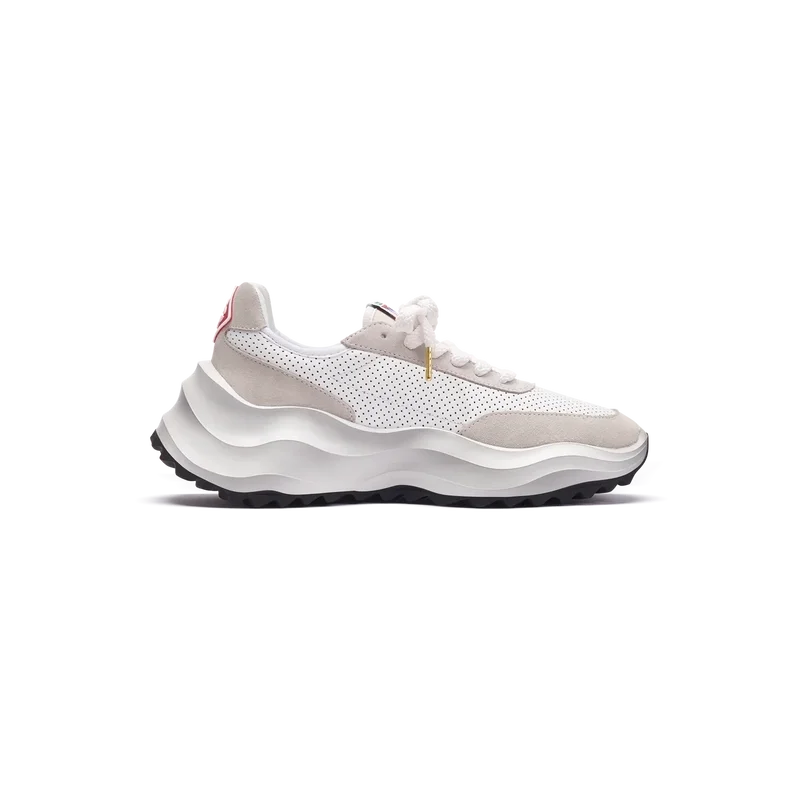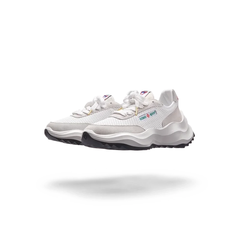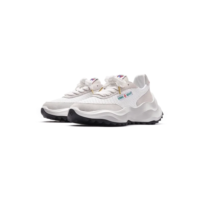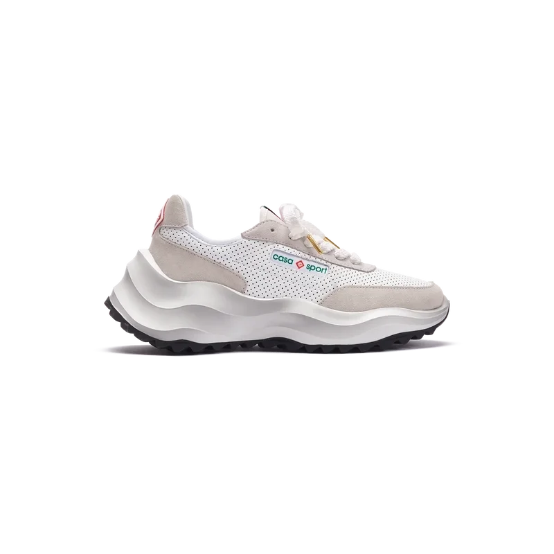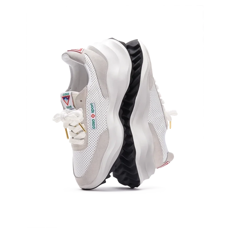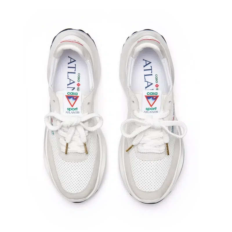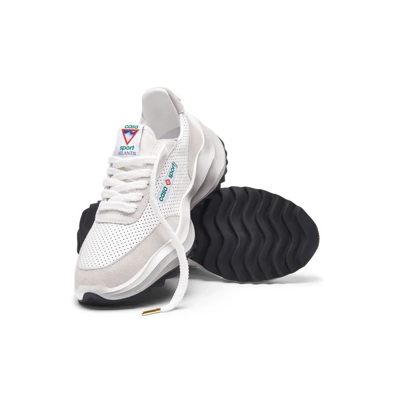 Concebido com o equilíbrio em mente, a harmonia entre a natureza e a arquitetura é refletida através de elementos que refletem noções de códigos de design artificiais, matemáticos, fluidos e orgânicos. Este é o Atlantis. O primeiro ténis da Casablanca.Tom sobre tom em branco sujoSobreposições em camurça, parte superior em couro perfurado, atacadores em camurça contrastante, patch de borracha com o diamante da Casablanca na aba do calcanhar, aba lateral com a marca Casa Sport tecida, etiqueta Atlantis tecida na língua, entressola em EVA esculpida com efeito ondulado, sola exterior em borracha, pontas dos atacadores douradas