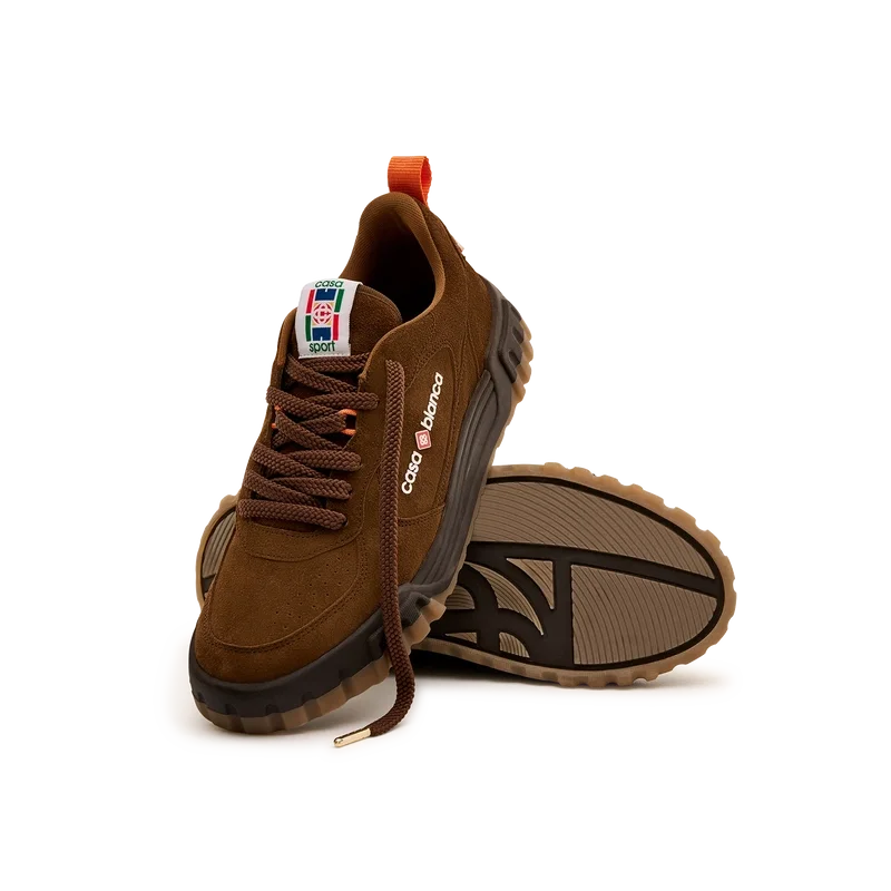A linguagem de design do ténis Court reflete as silhuetas icónicas dos anos 90. As cores presentes na sola de borracha são uma combinação dos códigos refinados do ténis e da arquitetura clássica, criando uma paleta harmoniosa em todo o calçado, com destaque para as cores primárias contrastadas pelo branco do ténis, para criar uma narrativa de cores com foco no desporto.A parte superior dos sapatos apresenta linhas de painéis integradas e fluidas, numa referência às silhuetas icónicas dos anos 90. A marca Casablanca está bem visível em todo o sapato, incluindo o motivo de diamante característico da marca no calcanhar, o logótipo em silicone nos painéis laterais e a etiqueta da língua e a palmilha com o motivo de um campo de ténis tecido, dando origem ao seu nome, o Court.