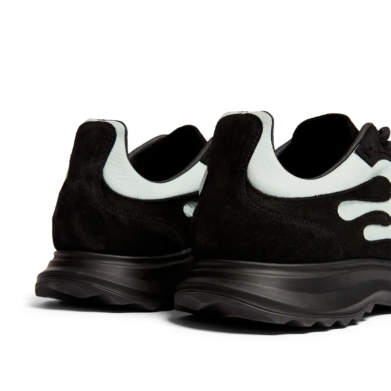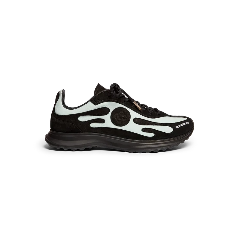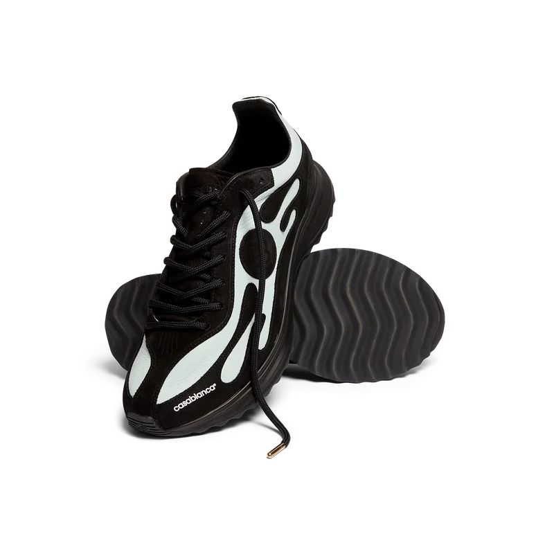 Os sapatos Stade para homem, em preto e menta, devem o seu nome à antiga medida grega para a distância de uma corrida a pé, que mais tarde se tornou a palavra para «estádio». O estilo é inspirado nos sapatos de corrida de alto desempenho e é uma transposição da tecnologia moderna a partir da tradição antiga; os códigos da corrida moderna, com a malha leve e o padrão brilhante, contribuem para a modernidade. A sola apresenta curvas esculpidas, que são uma referência ao nosso modelo Atlantis e um elemento característico do design de Casablanca.