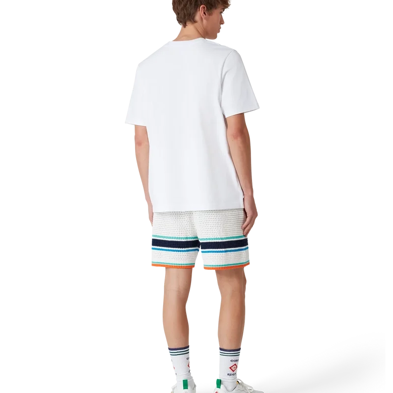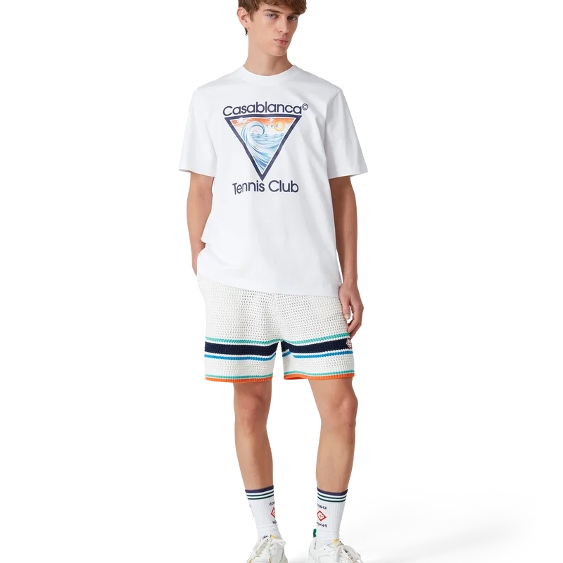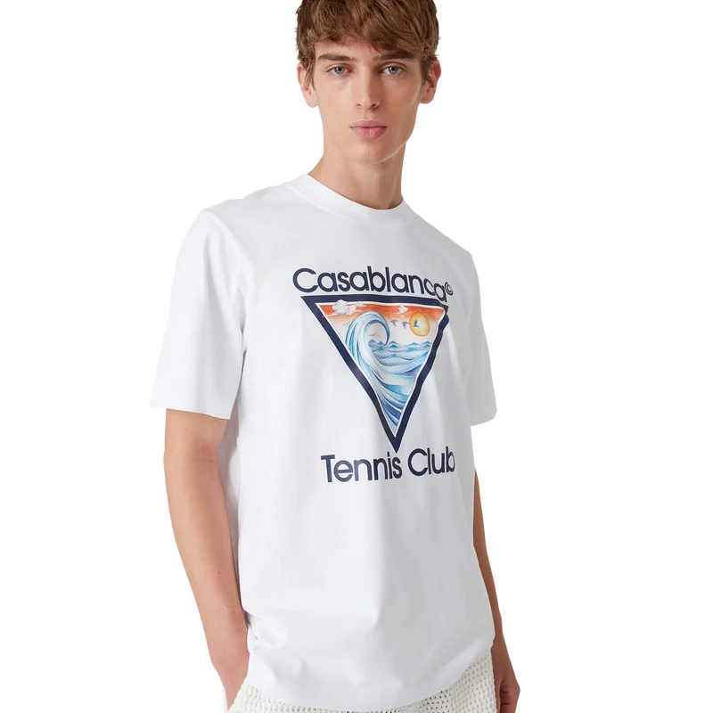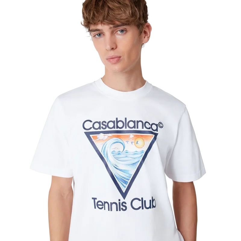 A T-shirt Tennis Club Icon é um modelo de manga curta com estampado, confeccionado em tecido de algodão orgânico, apresentando uma versão sazonal da nossa icónica arte Tennis Club, com elementos de design da natureza, arquitetura e ténis. Com um clássico decote redondo.