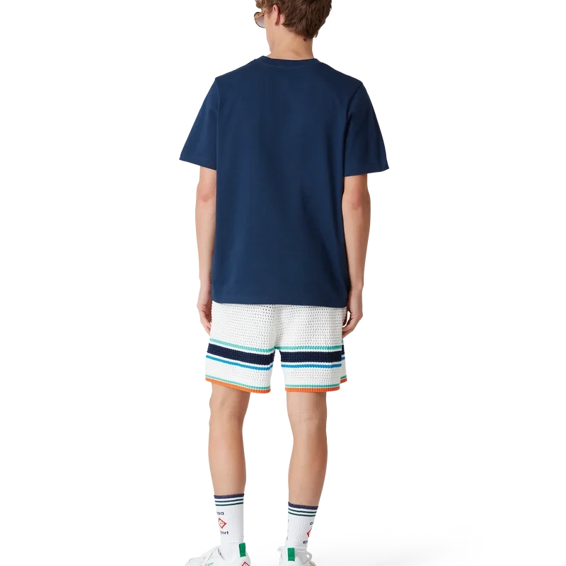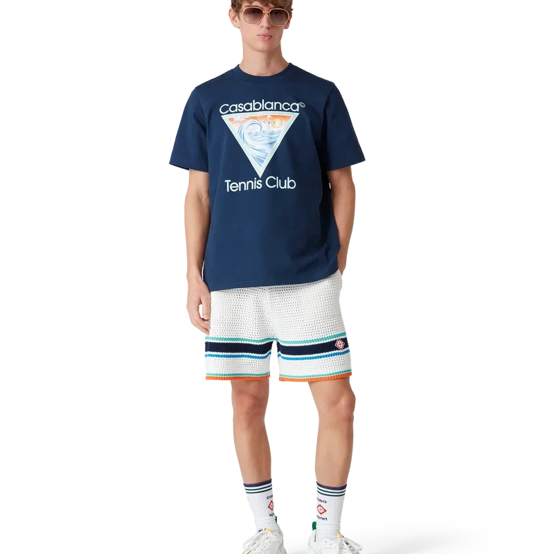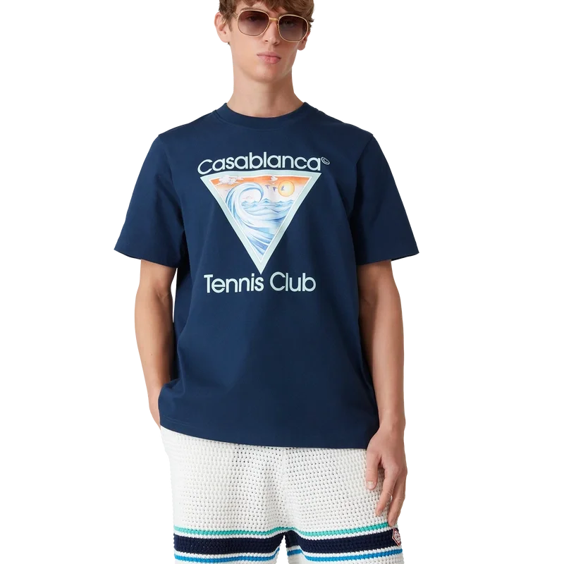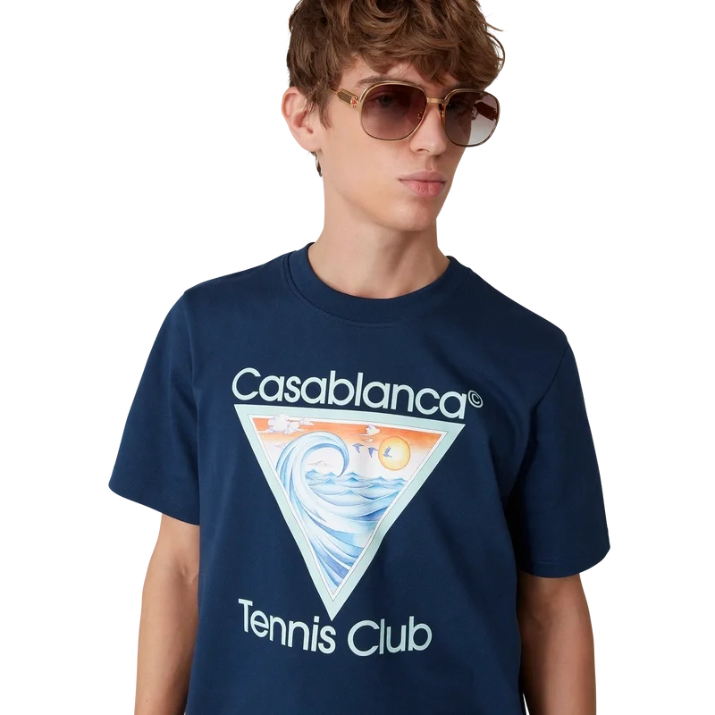 A T-shirt Tennis Club Icon é um modelo de manga curta com estampado, confeccionado em tecido de algodão orgânico estampado e apresenta uma versão sazonal da nossa arte icónica Tennis Club, com elementos de design da natureza, arquitetura e ténis. Concluída com uma gola redonda clássica.