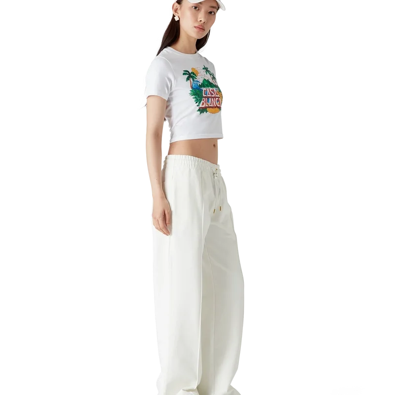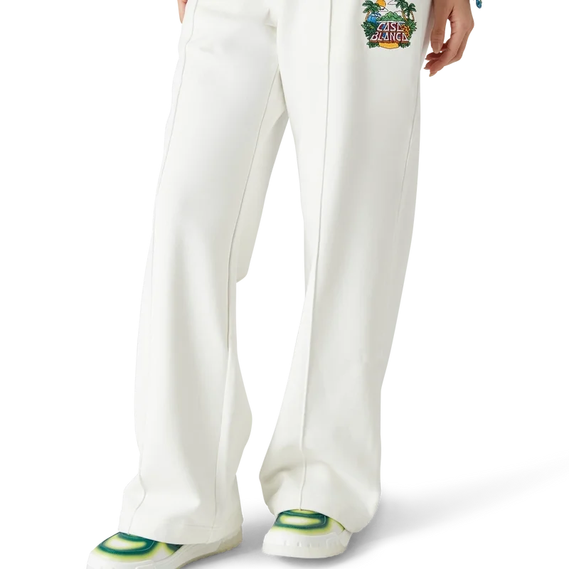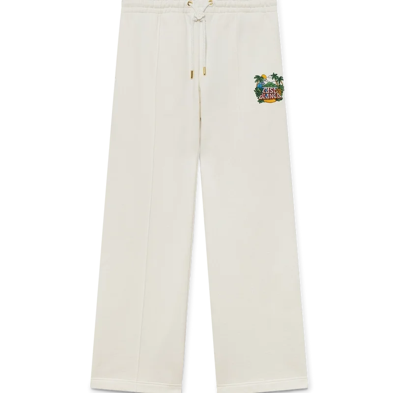 As calças de treino Casa Beach Wave apresentam um design estampado, confecionadas em tecido de algodão orgânico e com um padrão exclusivo que remete para uma lembrança que se compraria numas férias na praia. Completam-se com uma cintura elástica, cordão de aperto com pontas douradas, bolsos nas costuras e um bolso de remendo nas costas.