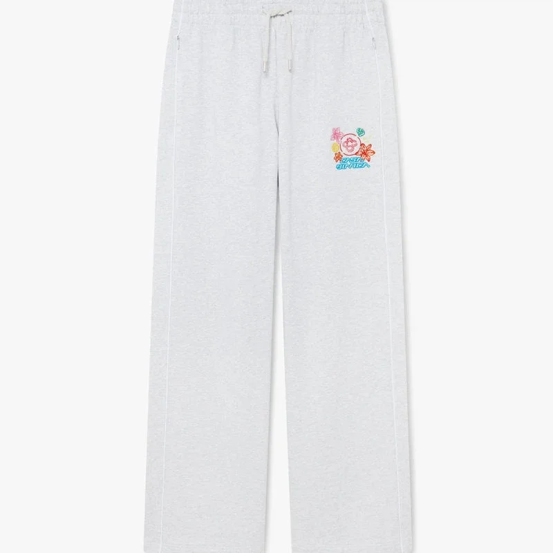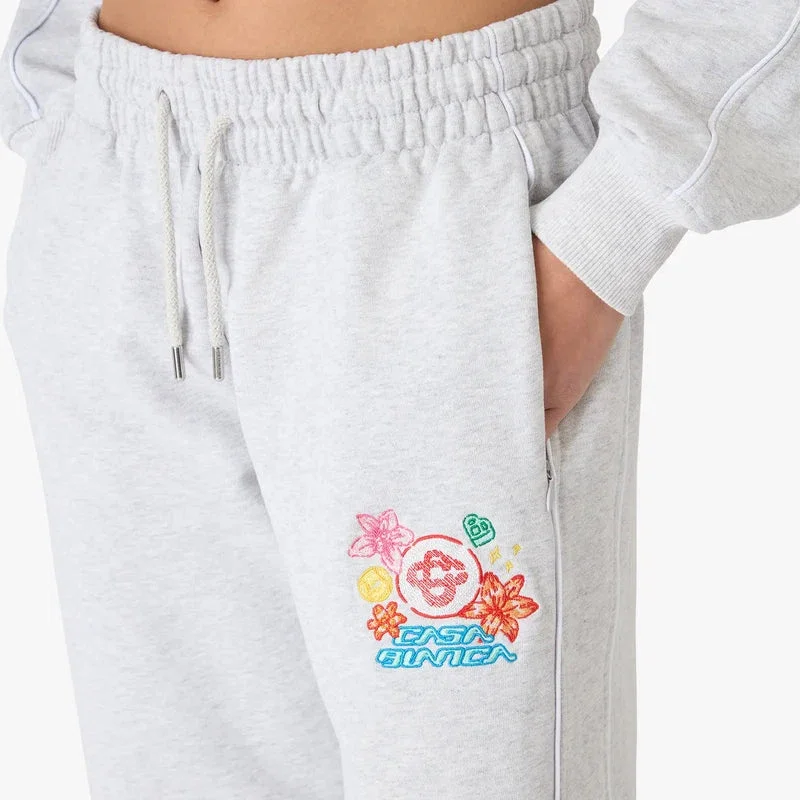 As calças de treino curtas cinzentas bordadas apresentam um design requintado, com a arte de colagem gráfica da estação que representa a iconografia e os elementos de design da nova estação, com interpretações do logótipo, da carinha sorridente e da flor de orquídea. Completadas com uma cintura elástica, fecho com cordão, detalhes de debrum nas laterais, bolsos nas costuras e um bolso de remendo nas costas. Concebidas para serem usadas com a camisola com capuz a condizer.