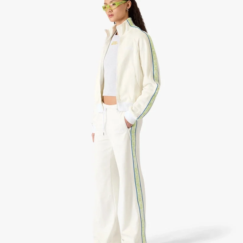 As Calças de Treino Brancas Laurel apresentam um corte reto com o logótipo Casablanca, emblemático da marca. Completam-se com uma cintura elástica, fecho com cordão, bolsos laterais nas costuras, detalhes com fita Laurel nas laterais e uma silhueta descontraída. Concebidas para serem usadas com o casaco de treino a condizer.