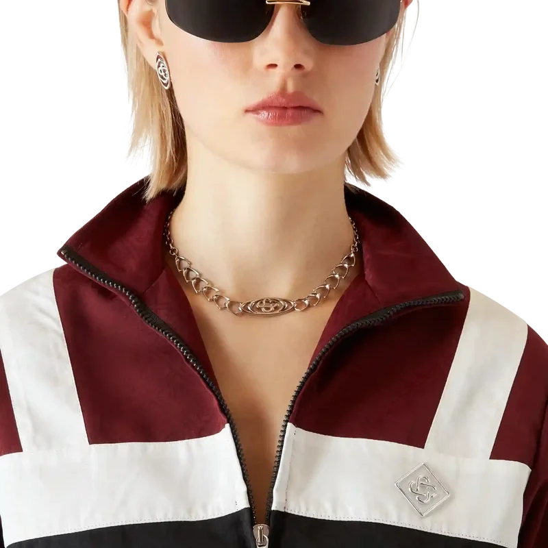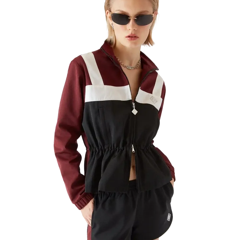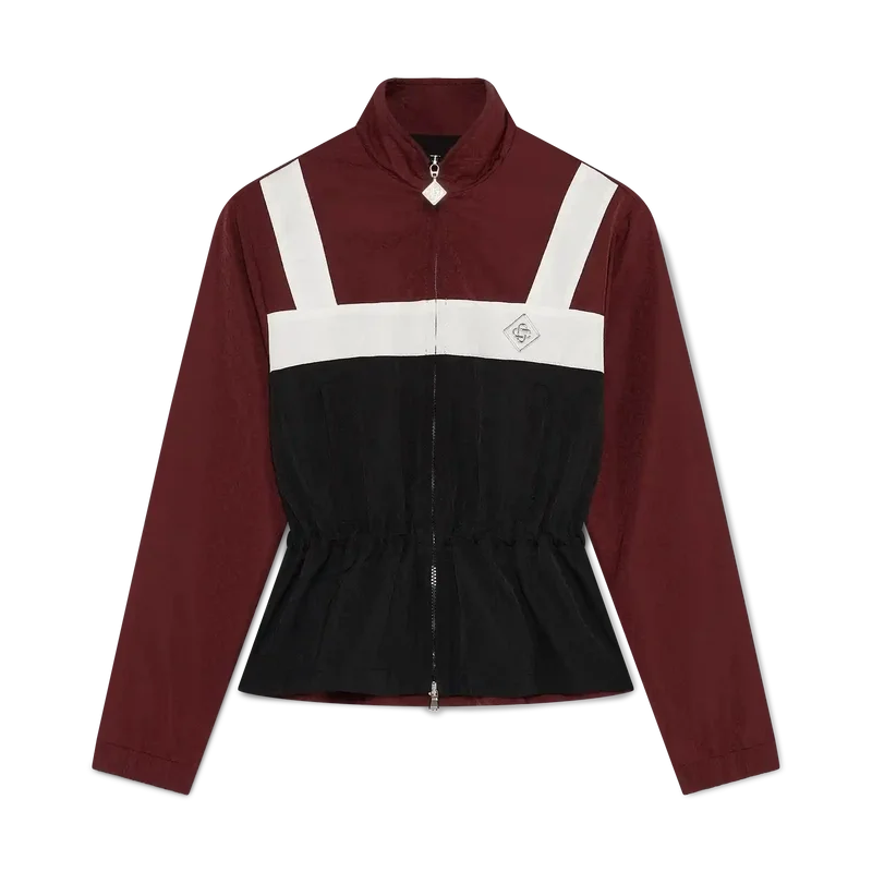 O casaco de nylon com monograma é um modelo de manga comprida requintado, confeccionado em nylon leve, com o emblema com o logótipo em forma de diamante da marca no peito. Apresenta fecho de correr com a etiqueta em forma de diamante característica da marca, gola alta, silhueta descontraída, cordão elástico interno na cintura e punhos elásticos.
