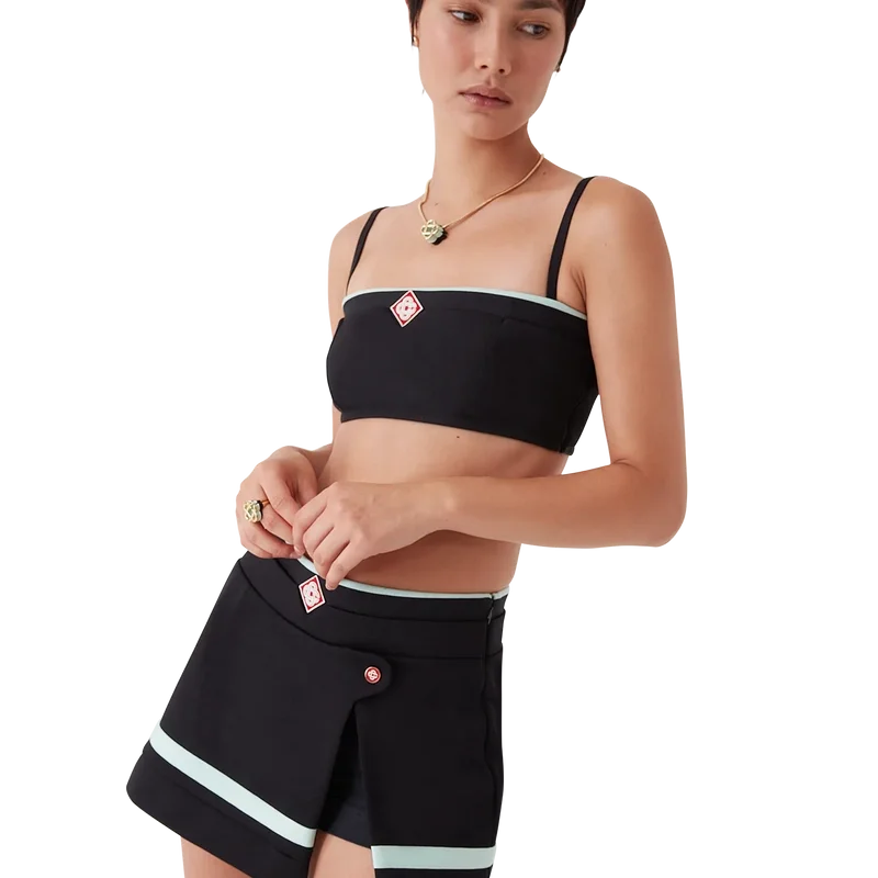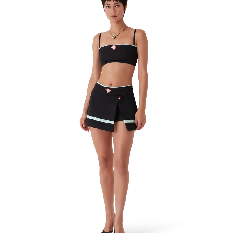 O bralette em tricô é um modelo sem mangas inspirado no vestuário desportivo, com o Diamond Monogram emblemático da marca no centro. Esta peça é confecionada em tecido de tricô, com alças finas e detalhes de bordas às riscas.