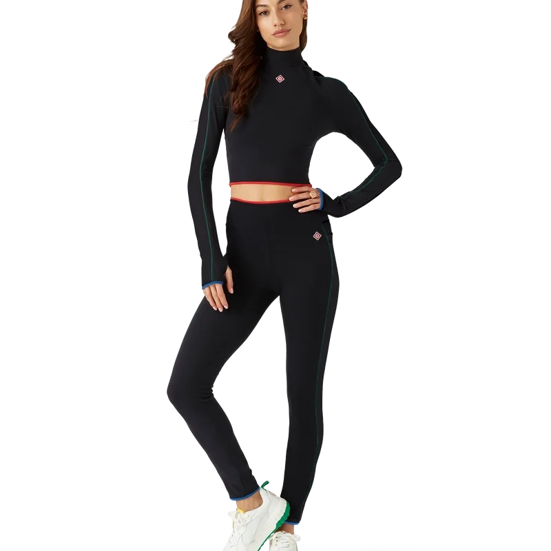 As leggings desportivas são um modelo de roupa desportiva de comprimento total, confeccionadas em tecido elástico para roupa desportiva. Apresentam o Diamond Monogram característico da marca, uma cintura com detalhes de borda contrastante e uma risca branca ao longo da lateral.