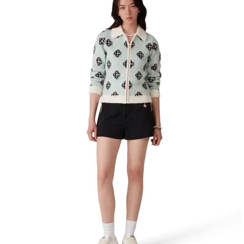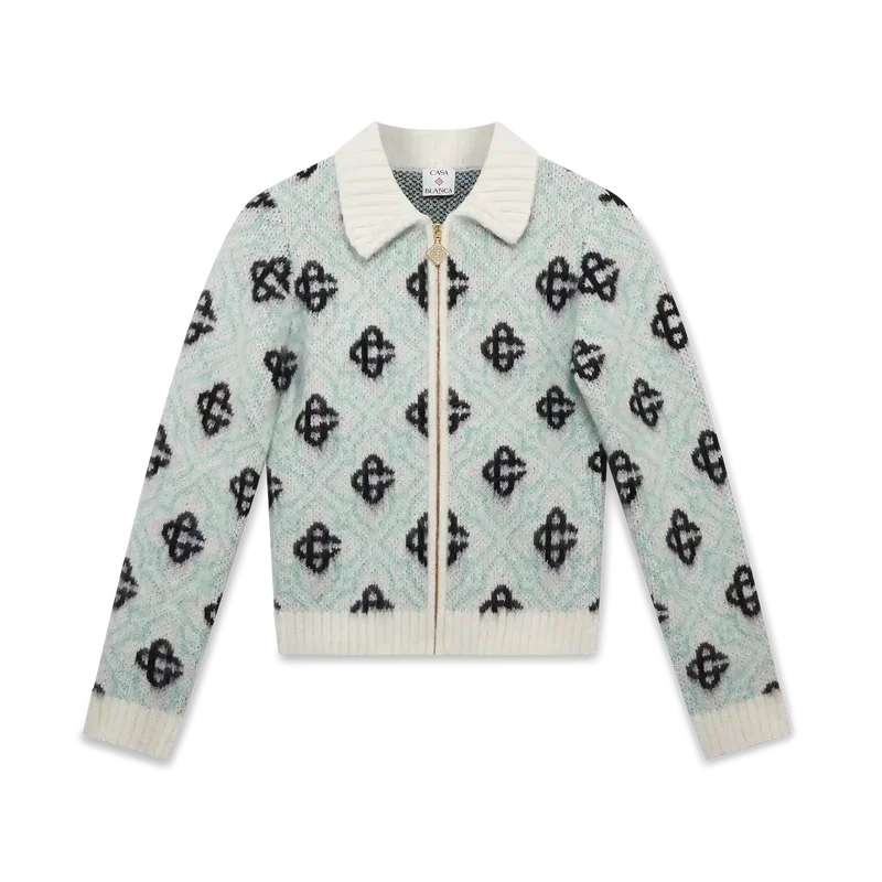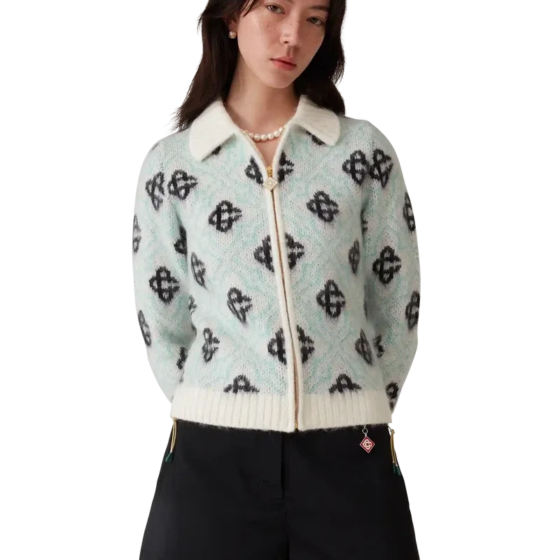 A camisola com fecho e monograma em mohair é um modelo de manga comprida que apresenta o monograma Cc entrelaçado, emblemático da marca, tecido no tecido. Com fecho de correr, puxador com o logótipo em losango emblemático e gola, punhos e bainha em canelado.