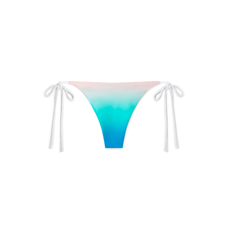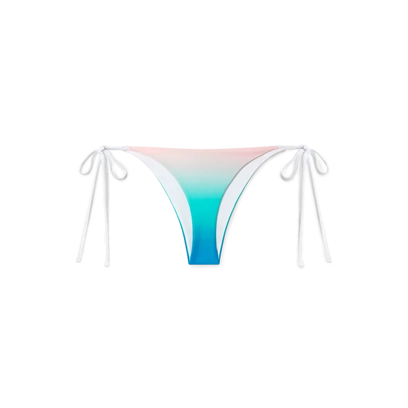 A parte de baixo do biquíni Gradient é um modelo estampado confecionado em tecido de mistura de poliéster, apresentando as cores gradientes desta estação. A paleta de cores desta coleção é leve e idealista, enfatizando temas etéreos essenciais à nossa marca. Completada com cordões brancos contrastantes – esta peça foi concebida para ser usada com o top de biquíni a condizer.