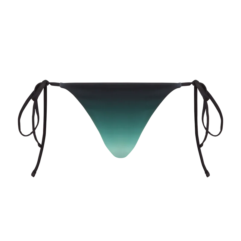 O calção de biquíni Gradient apresenta um design estampado confecionado num tecido técnico respirável para natação, com um gradiente em menta inspirado na paleta de cores do Park Hyatt, um icónico hotel de Tóquio que utiliza menta e preto no seu design de interiores. Com fechos de cordão nas ancas, esta peça foi concebida para ser usada com o top de biquíni a condizer.