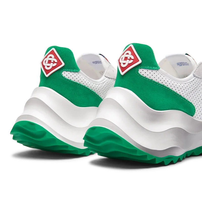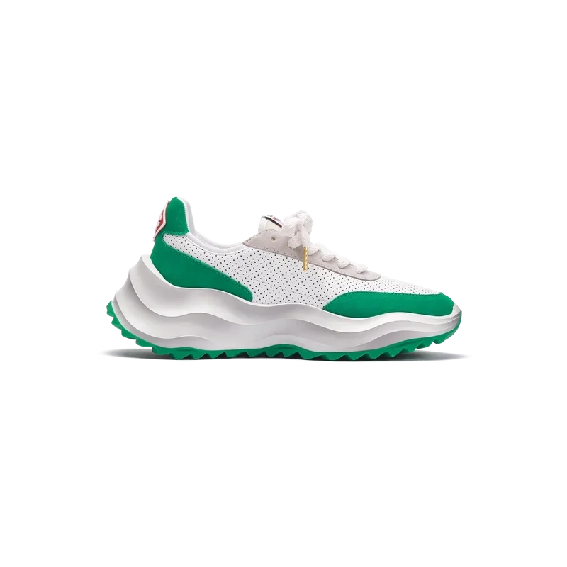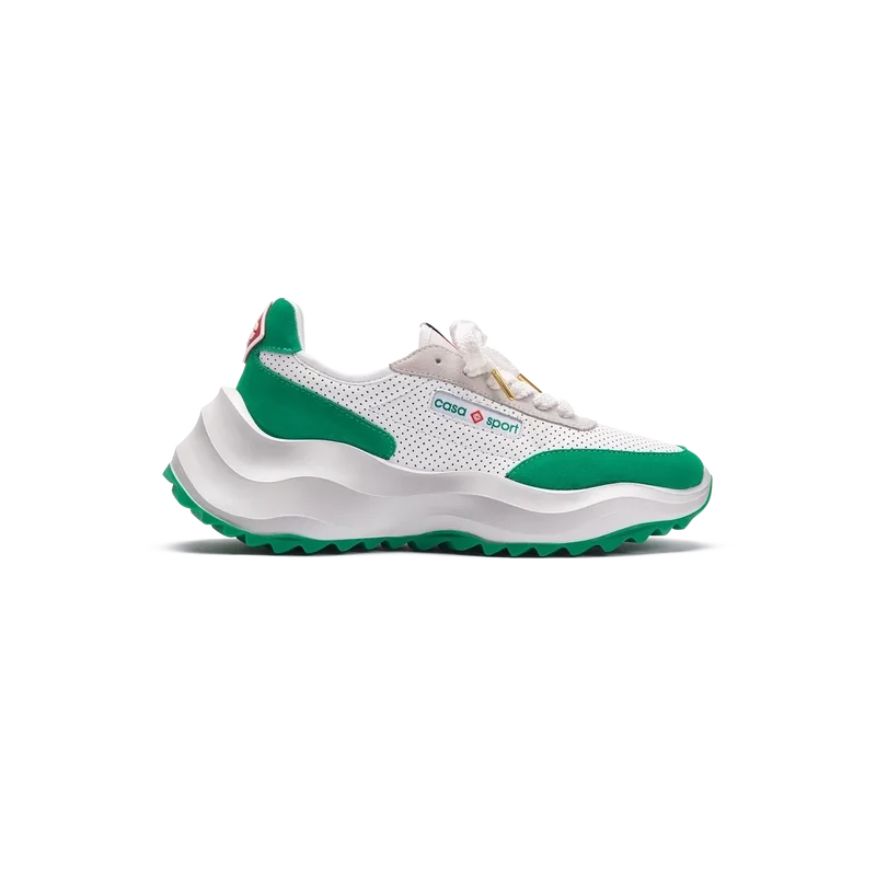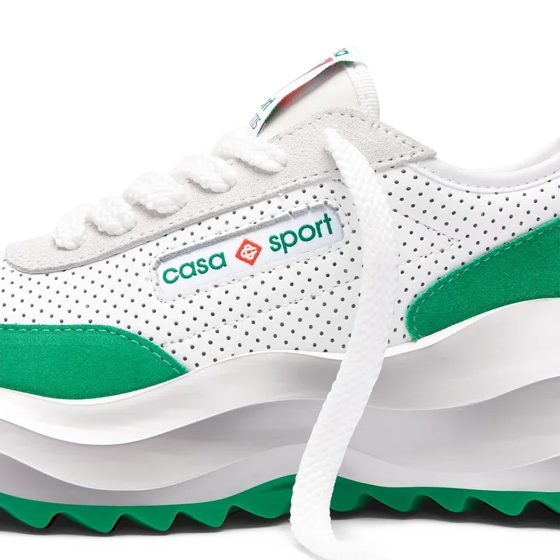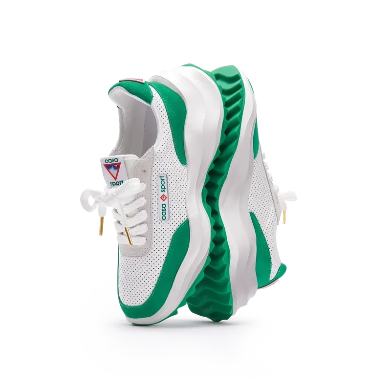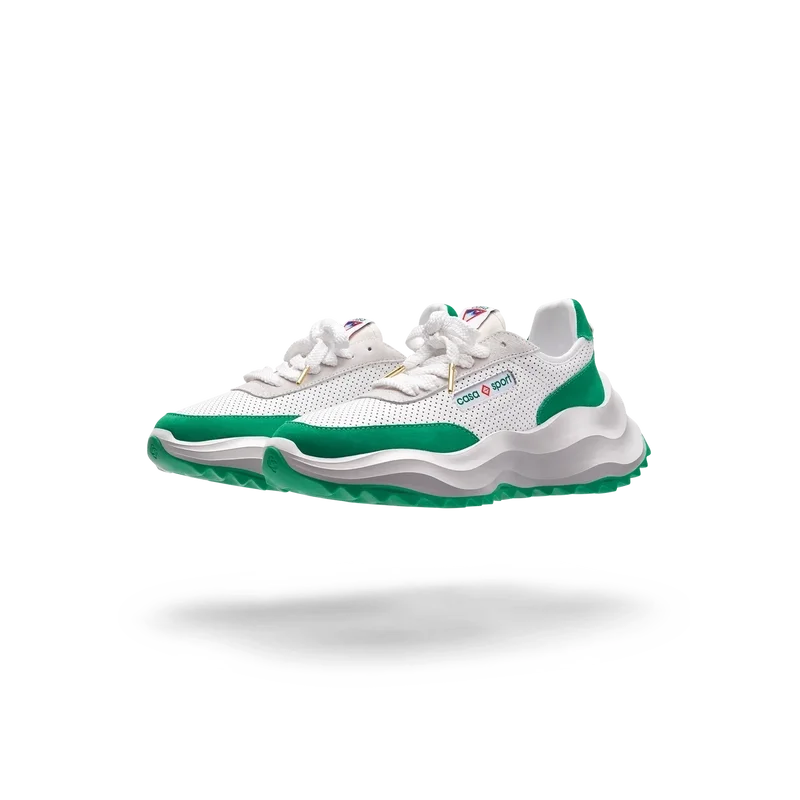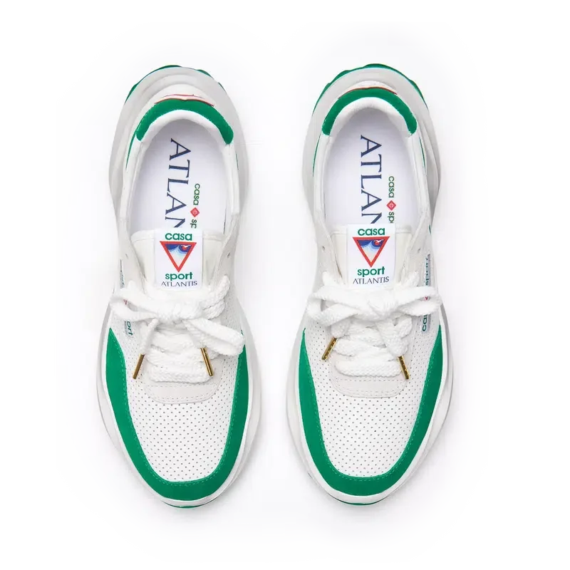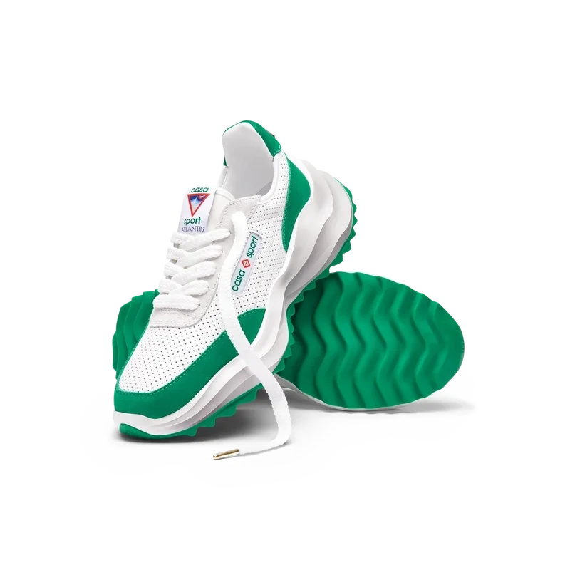 Concebido com o equilíbrio em mente, a harmonia entre a natureza e a arquitetura ecoa através de elementos que refletem noções de códigos de design artificiais, matemáticos, fluidos e orgânicos. Este é o Atlantis. O primeiro ténis da Casablanca.Sobreposições em camurça, parte superior em couro perfurado, presilhas em camurça contrastante, patch de borracha com o diamante da Casablanca na aba do calcanhar, etiqueta tecida com a marca Casa Sport no painel lateral, etiqueta Atlantis tecida na língua, entressola em EVA esculpida com efeito ondulado, sola exterior em borracha, pontas dos atacadores douradas