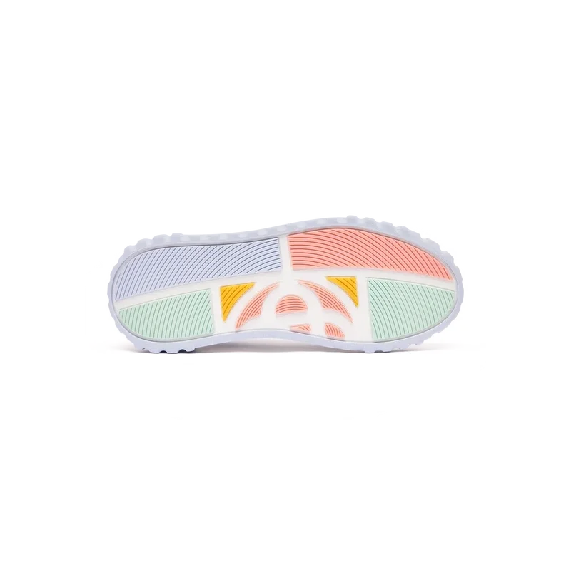 A linguagem de design do ténis Court reflete as silhuetas icónicas dos anos 90. As cores presentes na sola de borracha são uma combinação dos códigos refinados do ténis e da arquitetura clássica e criam uma paleta unificada em todo o calçado, com foco nas cores primárias contrastadas pelo branco do ténis para criar uma narrativa de cores com foco no desporto.