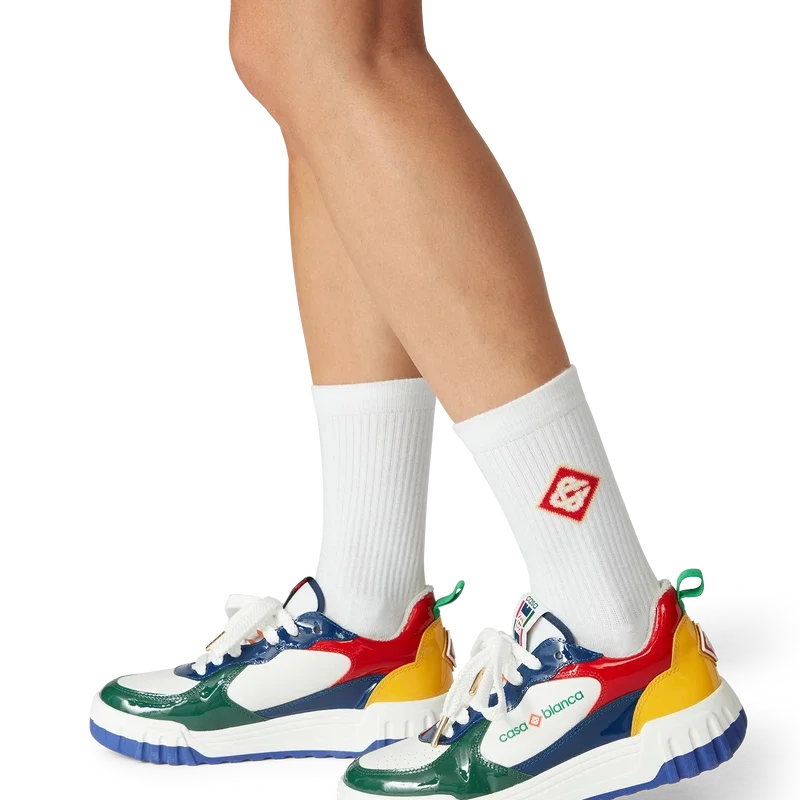 A linguagem de design do ténis Court reflete as silhuetas icónicas dos anos 90. As cores presentes na sola de borracha são uma combinação dos códigos refinados do ténis e da arquitetura clássica e criam uma paleta unificada em todo o calçado, com destaque para as cores primárias contrastadas com o branco do ténis, criando uma narrativa de cores com foco no desporto. Parte superior em couro branco tonal Emblema Casablanca Diamond em borracha no calcanhar Emblema Casablanca Sport em silicone na lateral Etiqueta Court tecida na língua Sola inspirada nos campos de ténis, realizada em cores primárias inspiradas no ténis Pontas dos atacadores douradas Alfândegas e impostos Tenha em atenção que podem ser cobrados direitos aduaneiros e impostos na entrega para qualquer cliente fora da UE. Por favor, verifique junto da alfândega do seu país para determinar os direitos aduaneiros e impostos locais antes de efetuar a compra. Se estiver entre dois tamanhos, poderá preferir usar o tamanho mais pequeno.