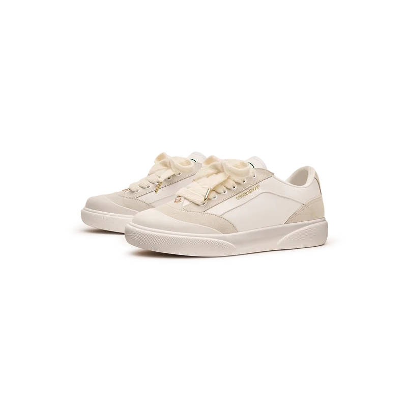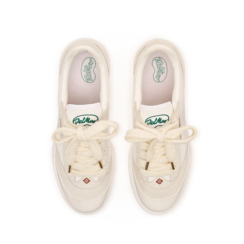 Os ténis Del Mar Brancos para mulher devem o seu nome ao famoso skatepark da Califórnia dos anos 80. Os sapatos Del Mar têm como tema os clássicos sapatos de skate do final dos anos 70 ao início dos anos 80. Apresentam muitos dos elementos característicos dos primeiros sapatos de skate, com parte superior em painéis de lona, biqueira em borracha, sola plana e atacadores grossos, ilhós contrastantes e logótipo discreto.