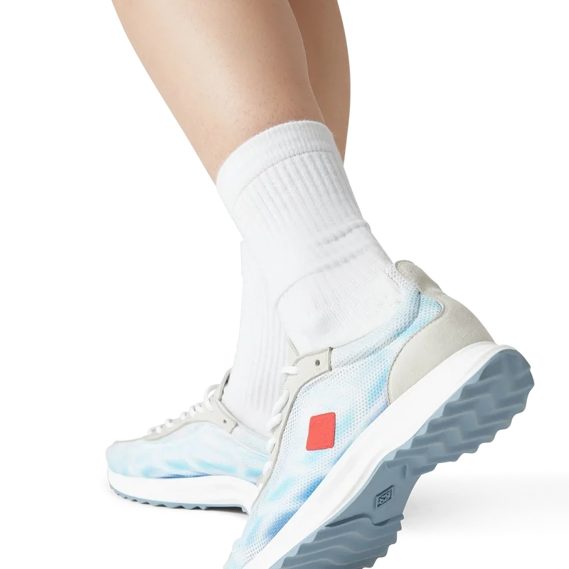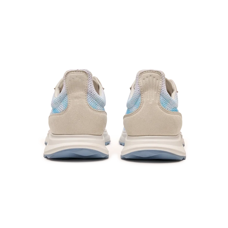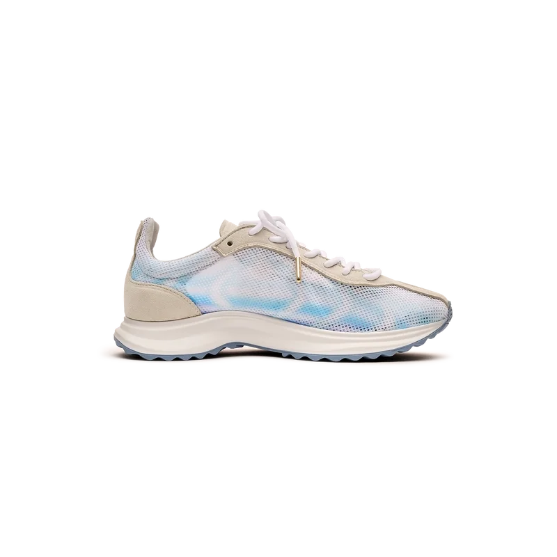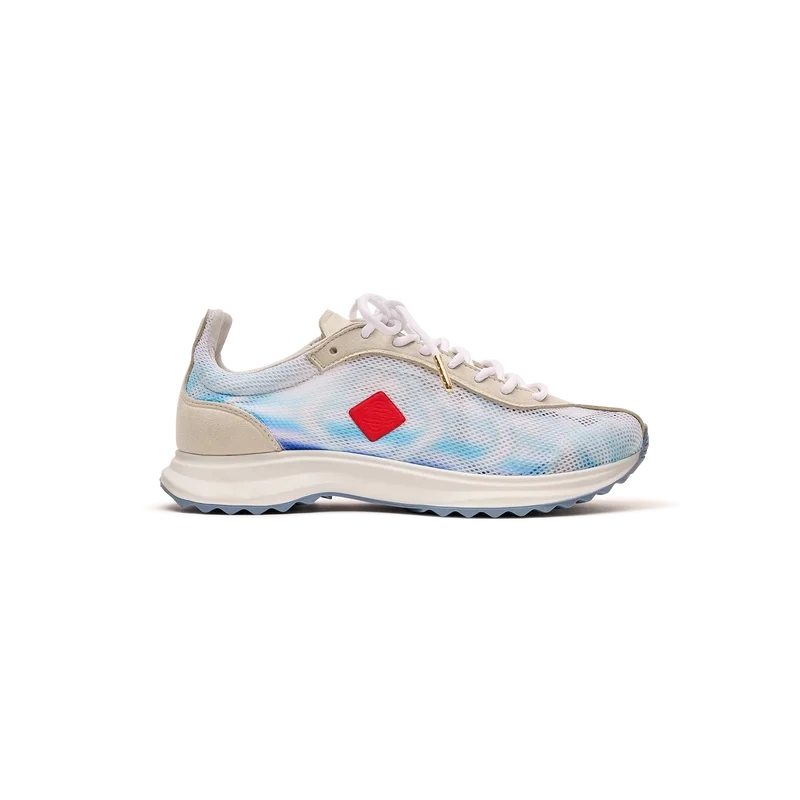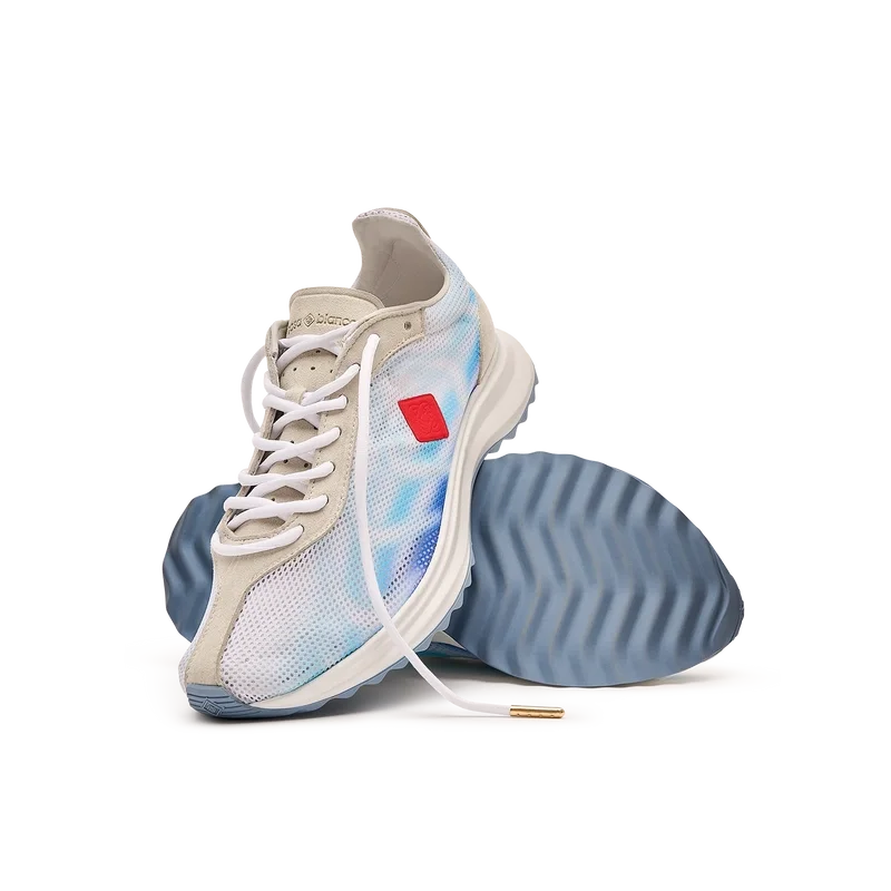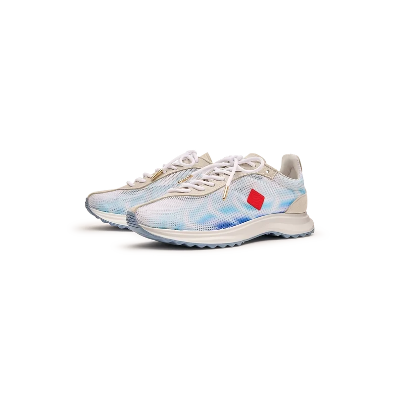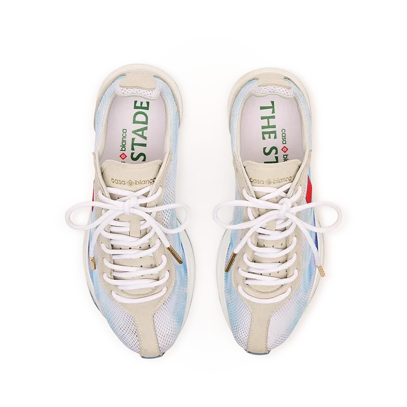 Os sapatos Stade Blue para mulher devem o seu nome à antiga medida grega para a distância de uma corrida a pé, que mais tarde se tornou a palavra para «estádio». O estilo é inspirado nos sapatos de corrida de alto desempenho e é uma transposição da tecnologia moderna a partir da tradição antiga; os códigos da corrida moderna, com a malha leve e o padrão brilhante, contribuem para a modernidade. A sola apresenta curvas esculpidas, que são uma referência ao nosso modelo Atlantis e um elemento característico do design Casablanca.