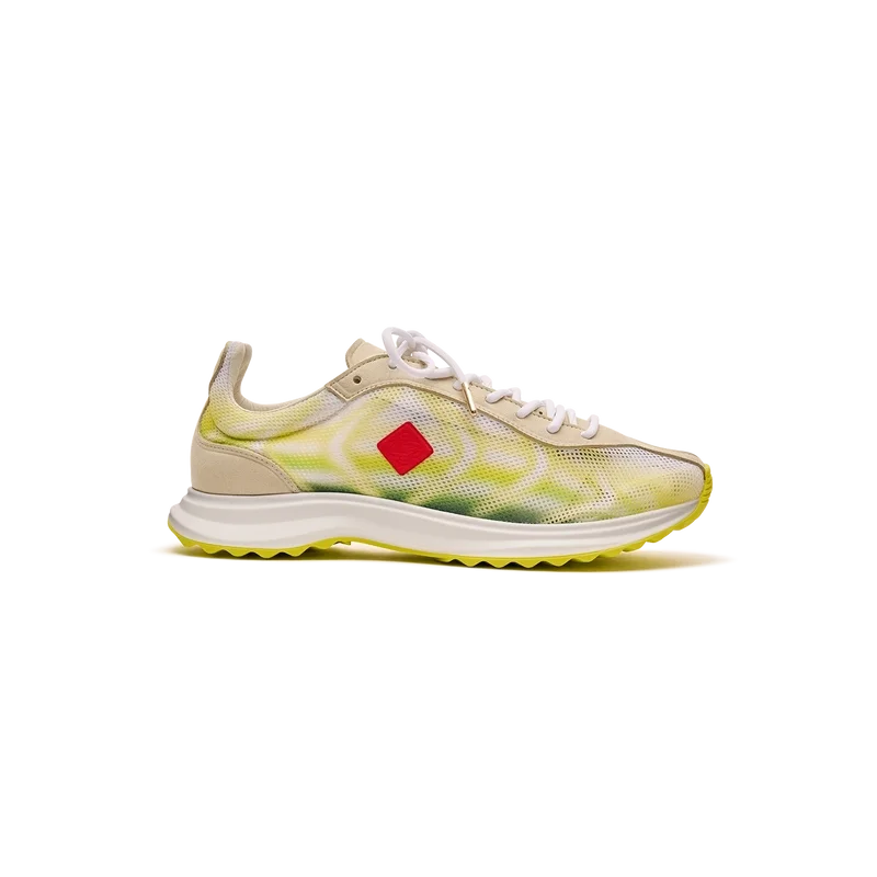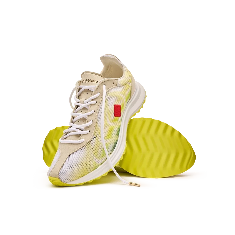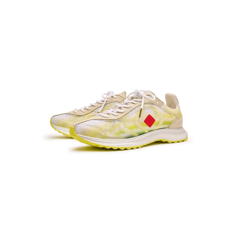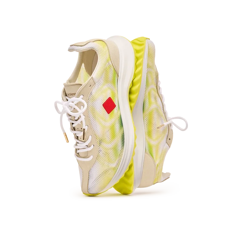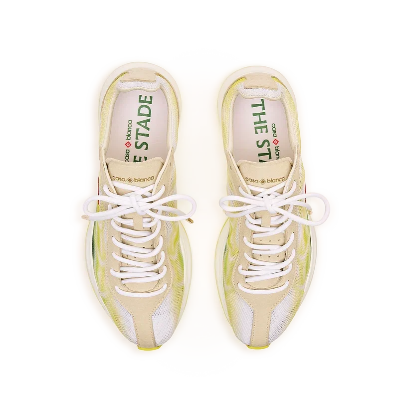 O ténis Stade Green para mulher deve o seu nome à antiga medida grega para a distância de uma corrida a pé, que mais tarde se tornou a palavra para «estádio». O estilo é inspirado nos sapatos de corrida de desempenho e é uma transposição da tecnologia moderna a partir da tradição antiga; os códigos da corrida moderna, com a malha leve e o padrão brilhante, contribuem para a modernidade. A sola apresenta curvas esculpidas, que são uma referência ao nosso modelo Atlantis e um elemento característico do design Casablanca.