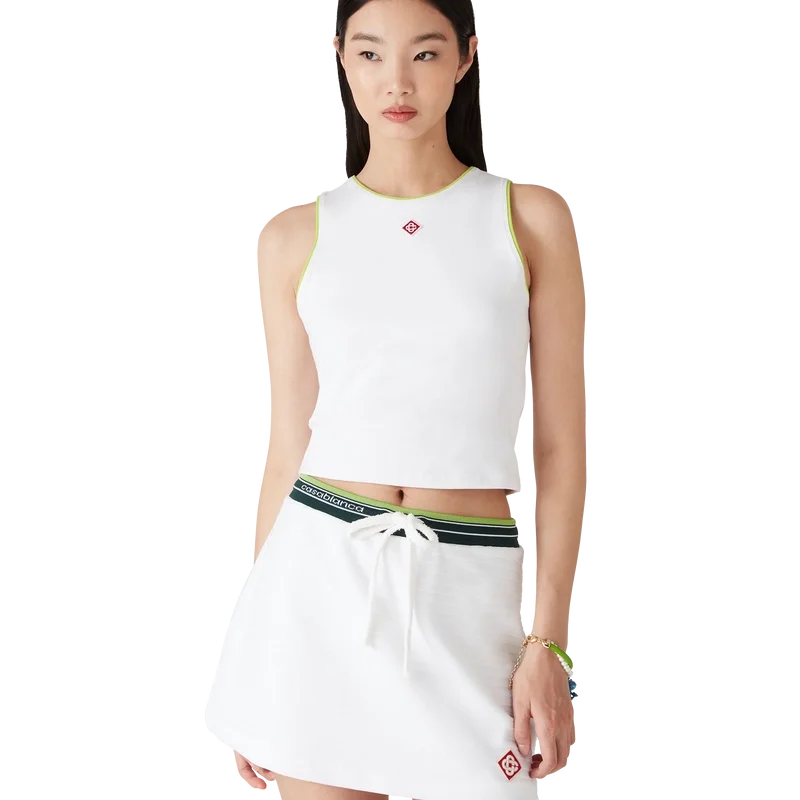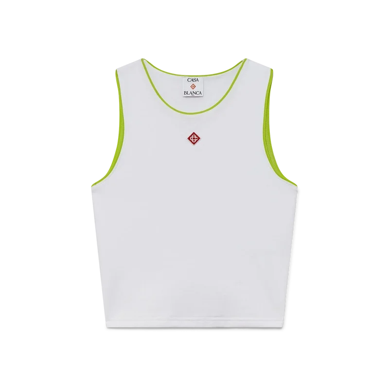A camisola sem mangas com logótipo de diamante é um modelo curto, sem mangas, confecionado em tecido de algodão. Apresenta o logótipo de diamante característico da marca e uma gola redonda clássica. Concebida para ficar acima do umbigo.